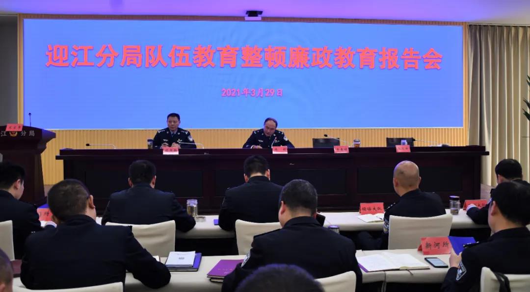 3月29日下午,根据分局队伍教育整顿工作安排,迎江分局召开廉政教育报告会。迎江区政府副区长、分局党委书记、局长陈明出席会议并讲话。分局党委副书记、政委李春禄主持会议,分局党委委员、纪委书记司国新作廉政教育报告,会议组织观看《警钟》警示教育纪录片。分局党委班子成员,各单位班子成员、民警代表、分局队伍教育整顿专班人员、各单位联络员参加会议。