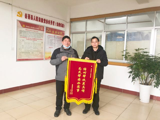 1月26日,岳西县青天乡老鸭村党支部书记熊寿青来到岳西县人民法院,送上“结对帮扶显真情 为民帮困办实事”的锦旗,代表村两委及群众感谢县法院支持该村发展。