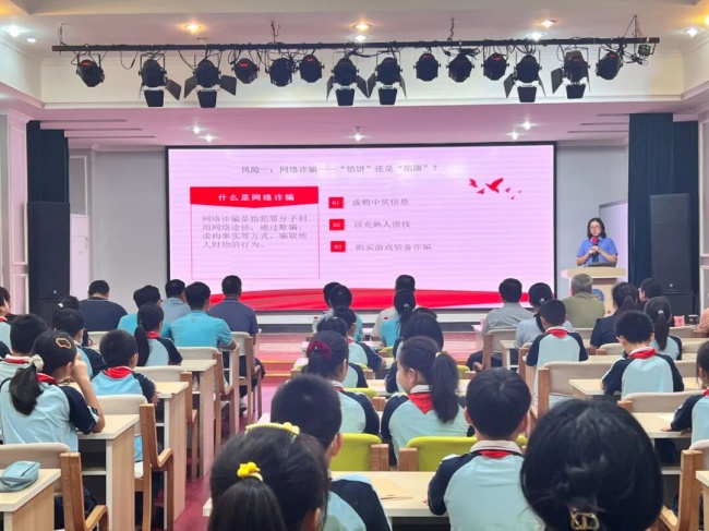 宣讲中,陈芳圆以“宪法守护e时代——做网络世界的小主人”为题,围绕保护未成年人网络世界的核心议题,针对学生的认知特点,量身定制普法课程,内容涵盖防范网络诈骗、隐私泄露、网络欺凌、不良信息与网络性侵害等四个方面。为了增加课堂的趣味性,检察官摒弃了传统说教,在每个案例解读之前,都设置了关键性的问题与同学们互动,让同学们在思考的基础上,更好地理解法条的含义。为鼓励同学们的积极参与,检察官还为互动同学送上了精心准备的笔记本、铅笔等小礼品。