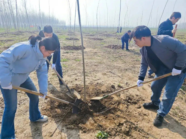 活动现场,检察干警分工协作、默契配合,有的挥锹铲土,有的扶苗填坑,有的踩实浇水,各环节衔接有序,现场热火朝天。经过一番努力,一棵棵新苗迎风挺立,为初春大地披上了崭新的绿装,勾勒出生机勃发的生态画卷。