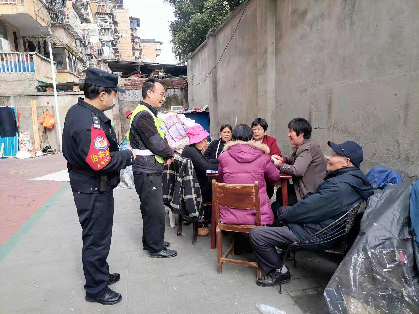 凝聚群防力量,筑牢社区安全防线。社区工作人员坚持开展网格化日常巡查,重点关注老旧小区、背街小巷、人员密集场所等区域的治安状况。通过入户走访,面向居民特别是老年人讲解防火、防盗、防诈骗等安全知识,并发放宣传资料,帮助提升居民自我防护意识。社区始终将安全放在突出位置,组织网格员与物业人员持续开展常态化安全隐患排查。针对电动车违规停放、“飞线”充电、占用消防通道等重点问题,进行地毯式排查与集中整治,确保排查全面、整改到位。