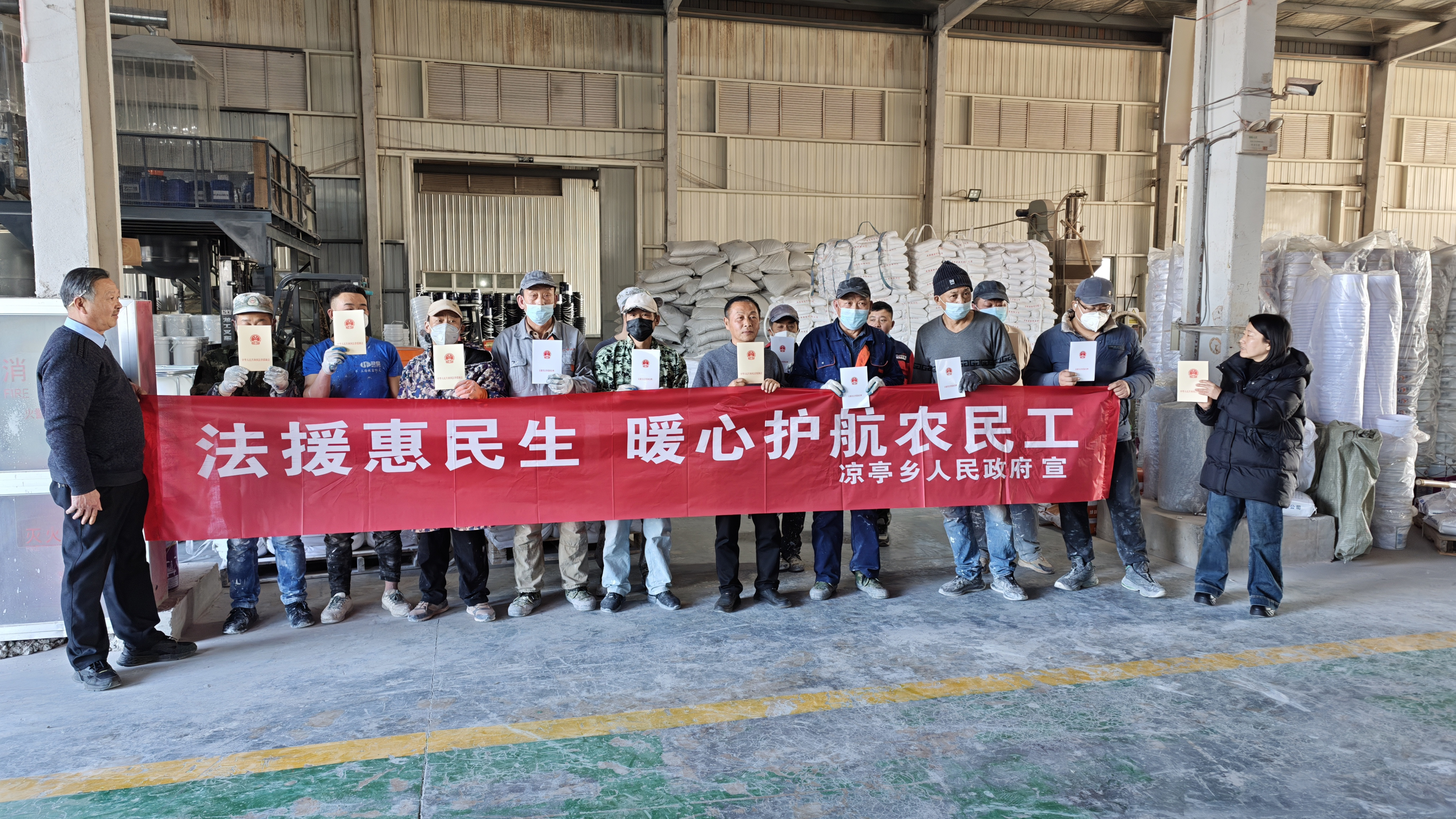 为切实维护农民工合法权益,筑牢安全生产与权益保障双重防线,2026年1月14日,凉亭司法所联合乡应急管理办公室走进徽富防火材料公司,开展“法援惠民生 暖心护航农民工”专项宣传活动,为近40名一线工人送上 “法治大礼包”。