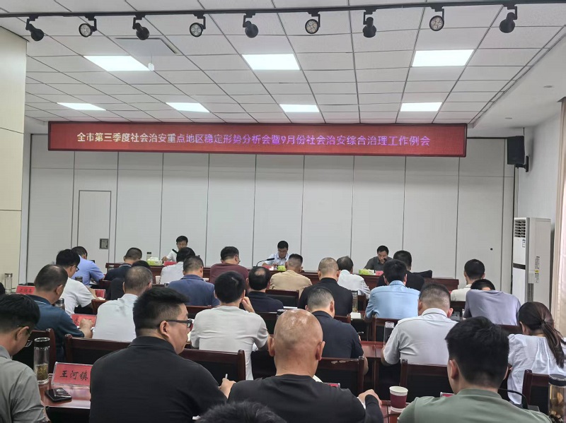 9月29日,全市第三季度社会治安重点地区稳定形势分析会暨9月份社会治安综合治理工作例会召开,市委常委、政法委书记刘文祥,市政府副市长、市公安局局长倪长城出席会议并讲话。市直有关单位分管负责同志、各乡镇政法委员参加会议。