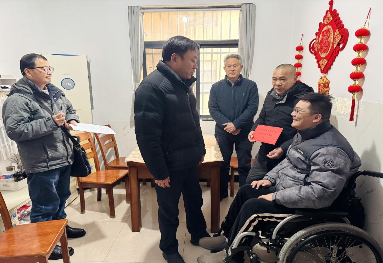 在新春佳节来临之际,安庆市委政法委副书记丁向东带队来潜慰问见义勇为英模许康康。