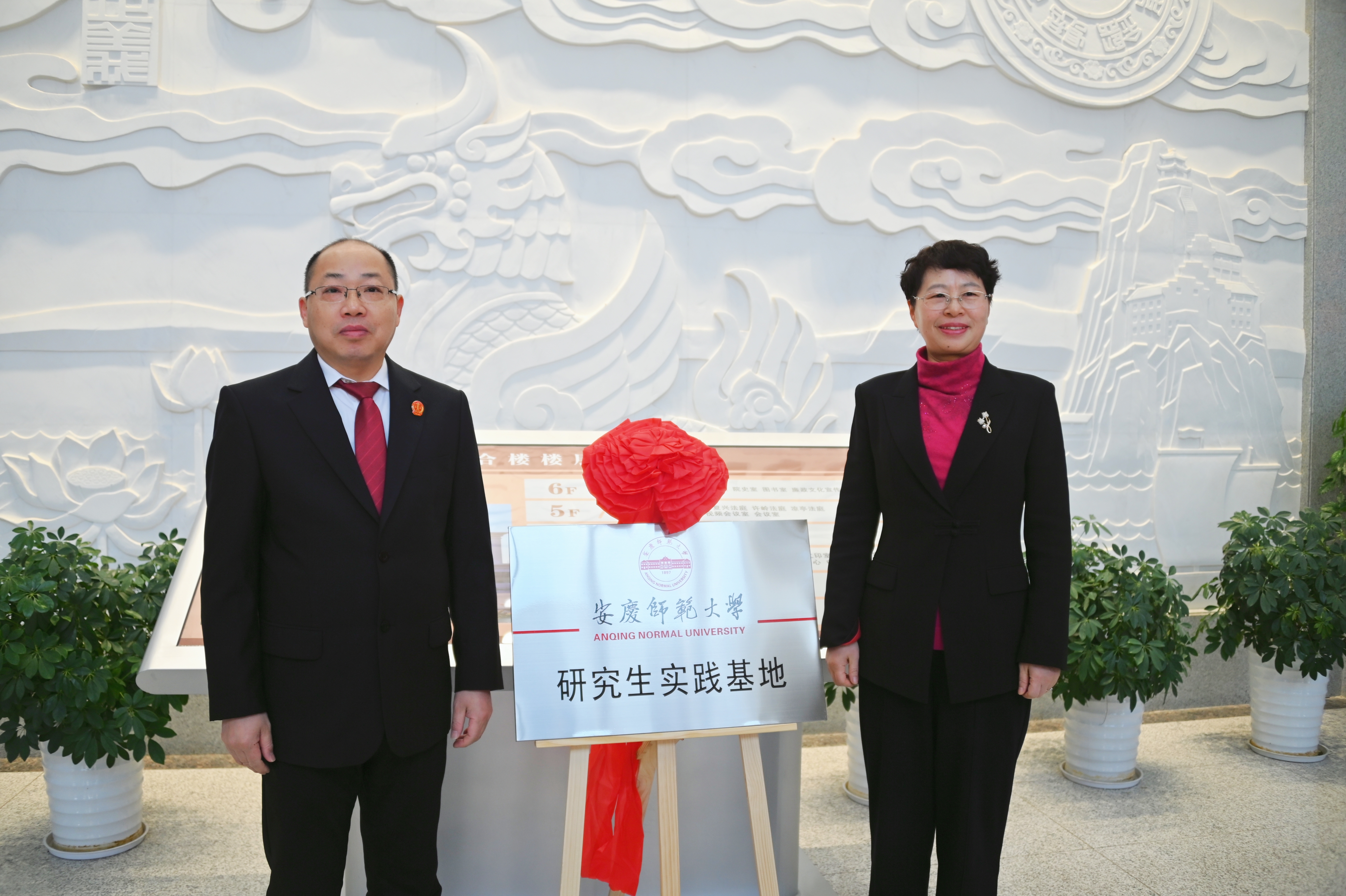 2月9日上午,宿松县人民法院与安庆师范大学研究生实践基地暨实践教学基地揭牌仪式在宿松法院隆重举行。安庆师范大学校长彭凤莲,宿松县人民法院党组书记、院长方热烈共同为基地揭牌并分别发表了热情洋溢的致辞。安庆师范大学法学院院长崔汪卫、安庆师范大学服务经济发展处副处长江晋剑、法学院教学秘书李丹出席仪式,宿松法院班子成员、二级机构负责人参加仪式。