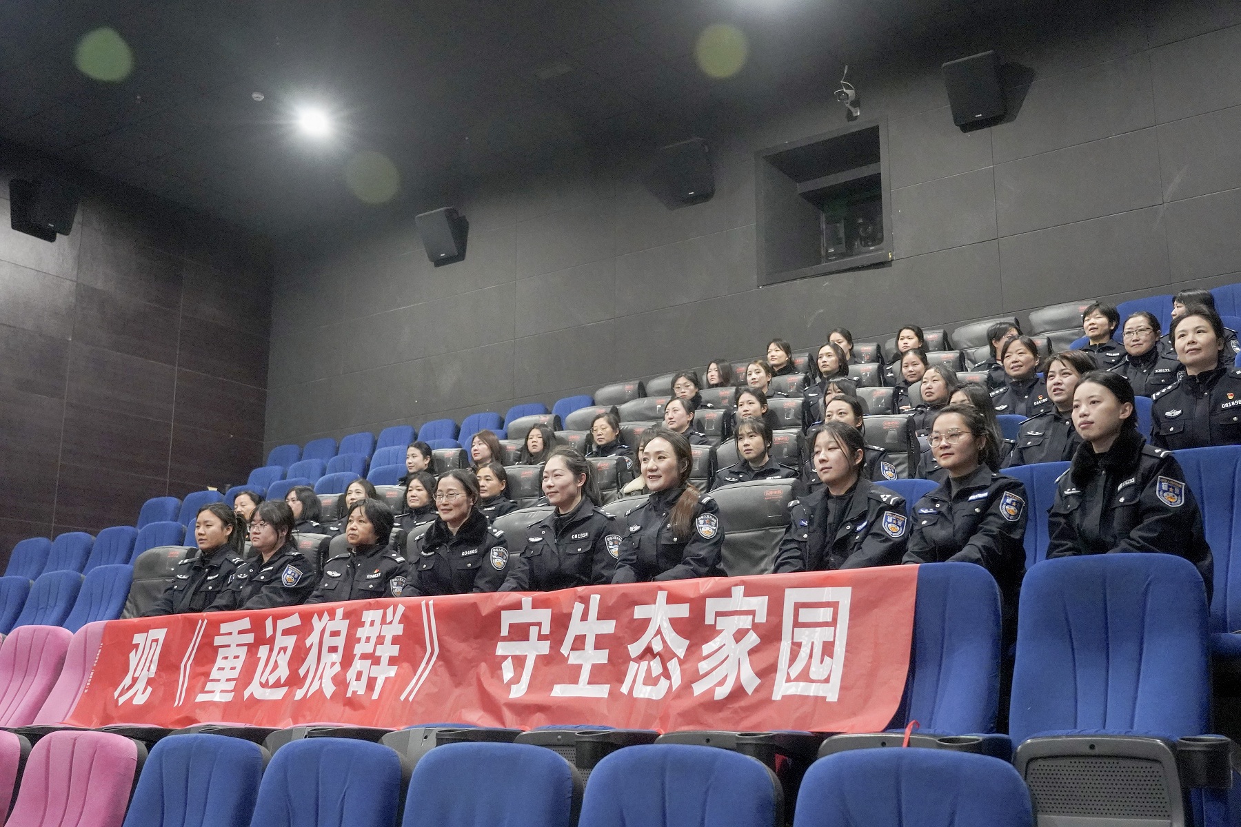 身体的洗礼之后,是精神的深植。全体女警集中观看生态纪录片《重返狼群》,在光影交织中接受了一次生态灵魂的洗礼。