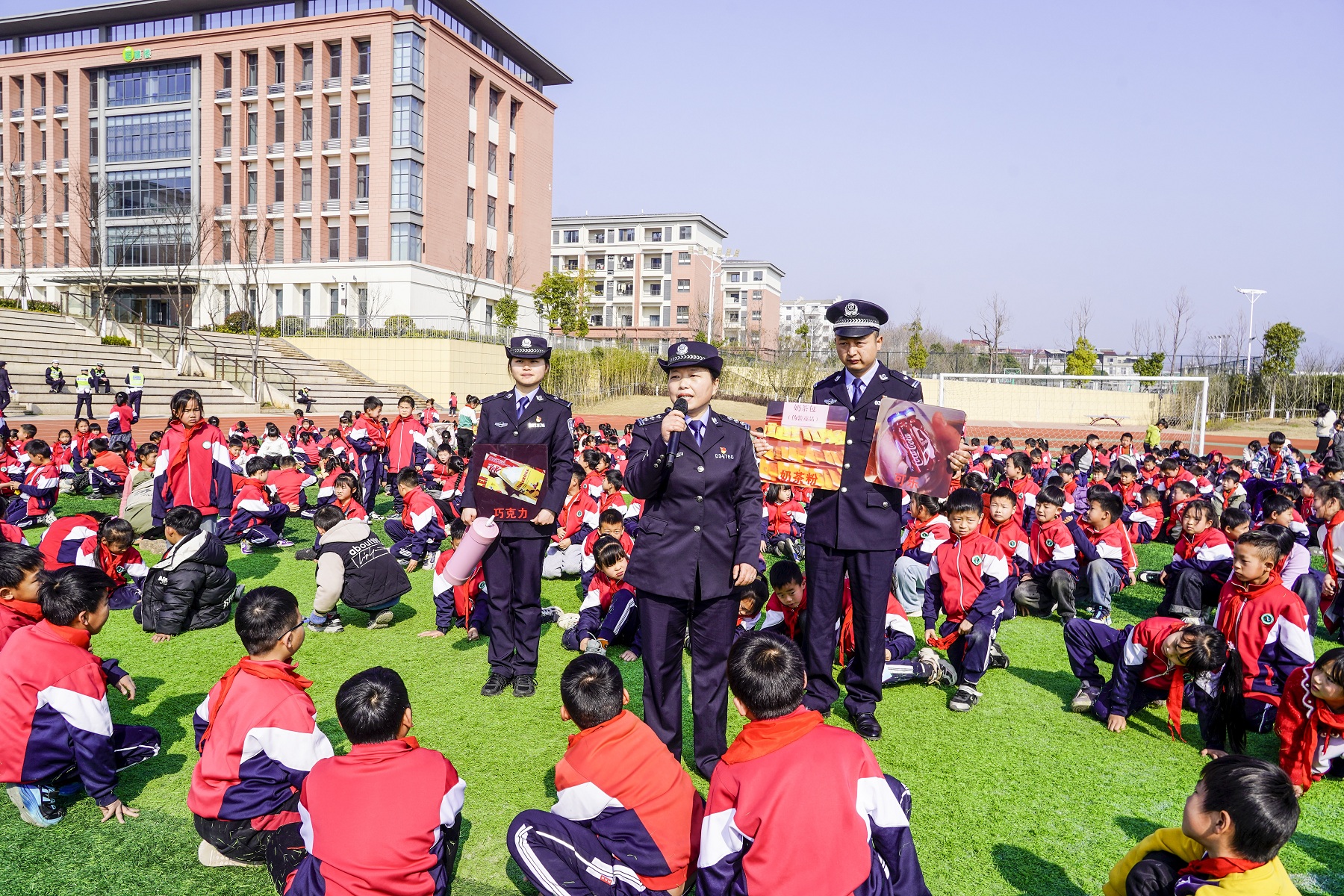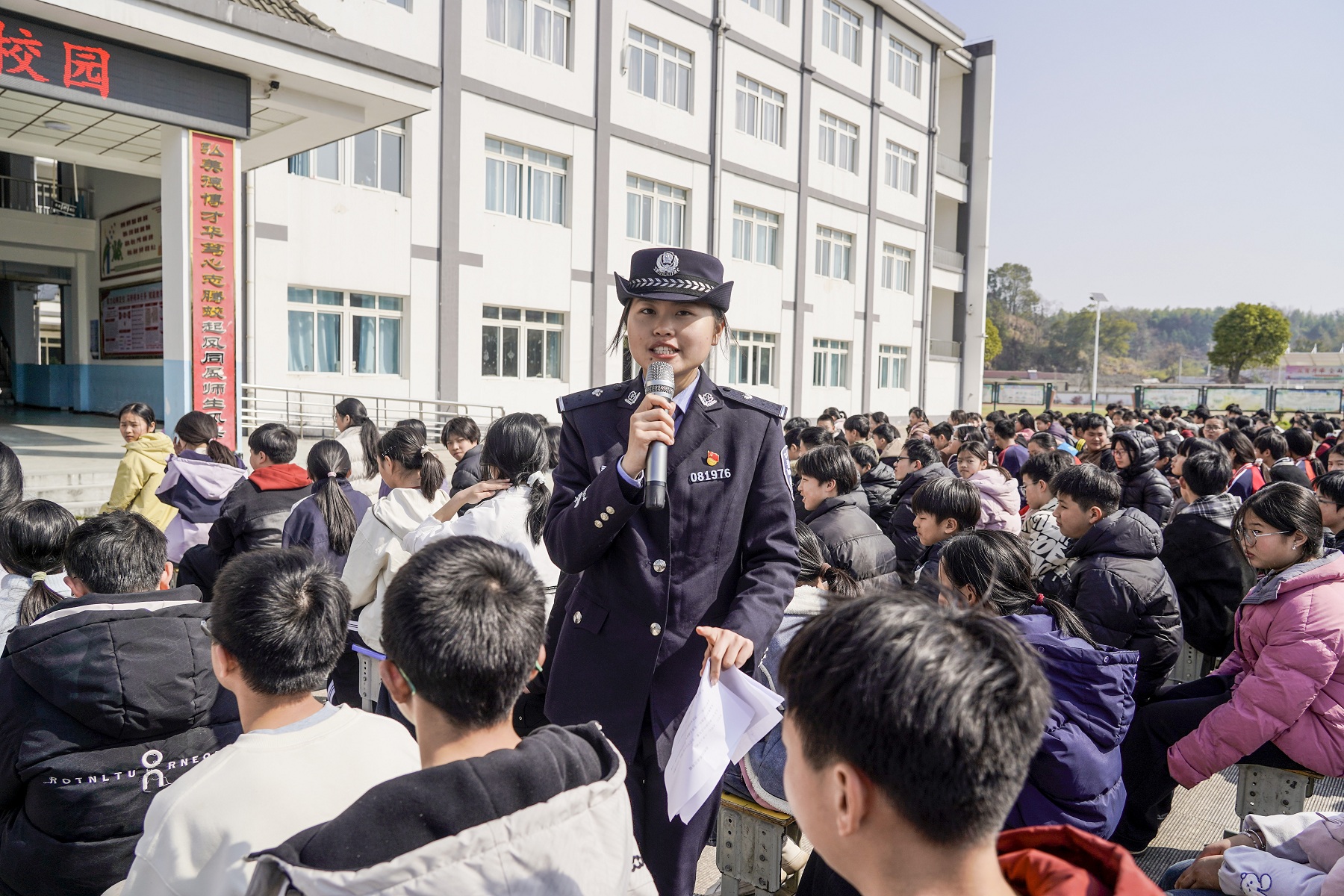 此次宣传活动覆盖两所学校,形式鲜活、互动性强。上午8时,首场活动在二郎镇中心小学操场拉开帷幕。民警、辅警化身安全讲师,摒弃枯燥说教,用浅显易懂的语言与960余名学生面对面交流,现场气氛热烈。随后,宣传小分队前往二郎初中,为700余名初中生开展同主题宣传,实现安全知识全覆盖、无死角。