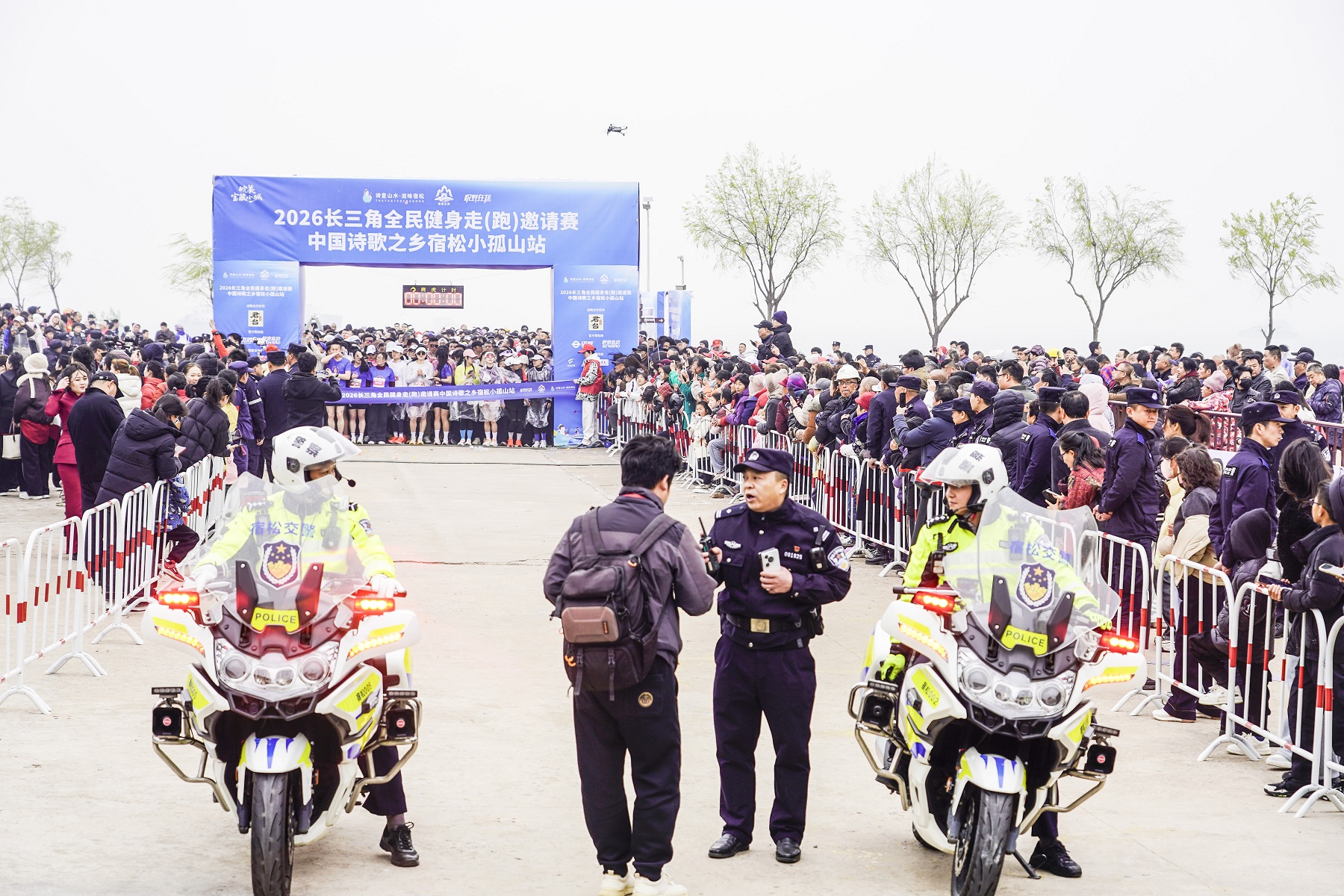 3月15日,2026长三角全民健身走(跑)邀请赛在宿松县小孤山开赛。来自省内外的1300余名选手参与角逐。为保障活动安全顺畅,宿松县公安局全警动员、精准施策,圆满完成安保护航任务,展现了公安队伍良好形象。