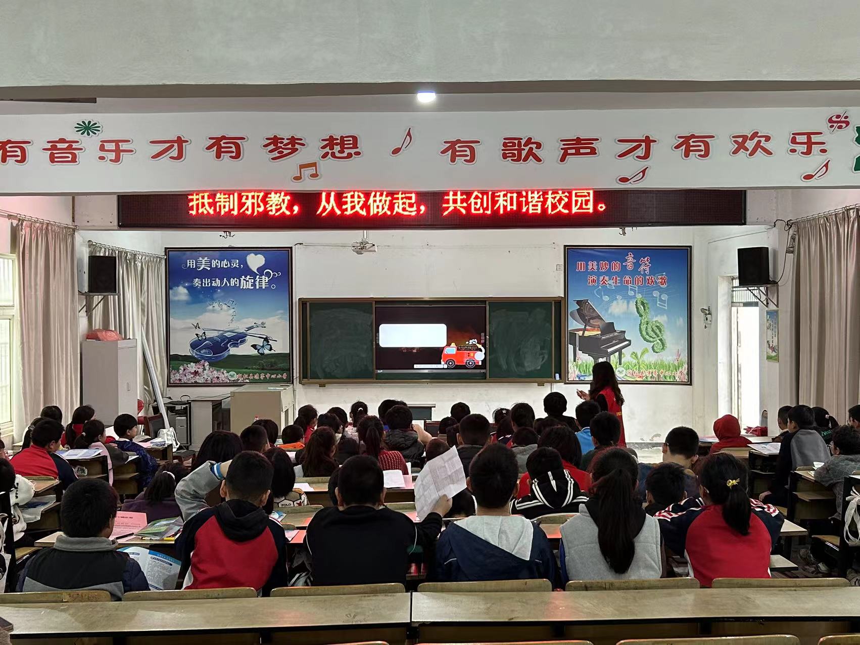 活动现场,工作人员进入班级开展宣传,用通俗易懂的语言对邪教的种类、本质、危害性,以及科学防范进行了详实的讲解,要崇尚科学、反对邪教、对邪教要做到“不听、不看、不信、不传”。让同学们深刻地认识到国家安全对于个人和整个国家的重要性,也认识到邪教、诈骗对个人、家庭及社会的严重危害,进而积极参与到反邪教、反诈骗行动中来,并鼓励同学们通过“小手拉大手”,带动家人积极参与反邪教宣传志愿活动。