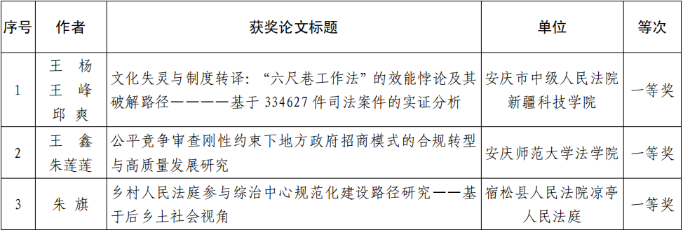 县法院凉亭法庭干警朱旗总结提炼基层人民法庭运用“六尺巷工作法”化解社会矛盾工作经验做法,撰写的论文《乡村人民法庭参与综治中心规范化建设路径研究——基于后乡土社会视角》,近日在市委政法委、市法学会组织开展的“六尺巷工作法”征文活动中荣获一等奖。