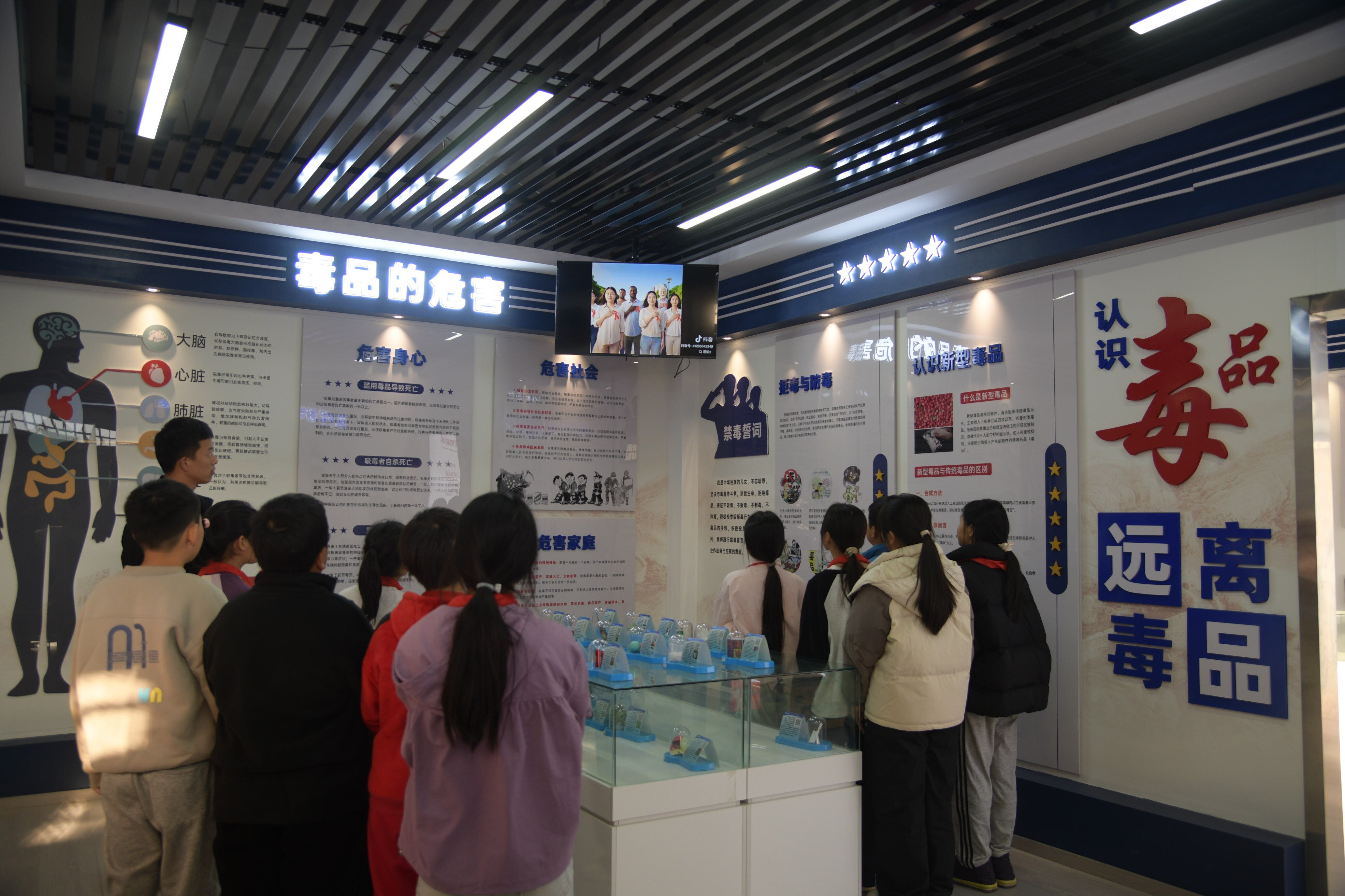 活动中,禁毒志愿者将学生们领进位于学校内的禁毒教育示范基地,首先引入眼帘的是摆放有序的毒品模型,在参观过程中,志愿者从常见毒品类型,如鸦片、海洛因、冰毒、摇头丸到伪装巧妙、极具迷惑性的新型毒品,如“跳跳糖”“奶茶粉”“电子烟”等,详细介绍其外观特点、吸食危害以及对个人和家庭的严重后果。随后志愿者带领学生观看禁毒与艾滋病的视频后,围绕毒品和艾滋病的关系、如何防范艾滋病等内容做交流。在场学生认真听讲,反响热烈,受益匪浅。
