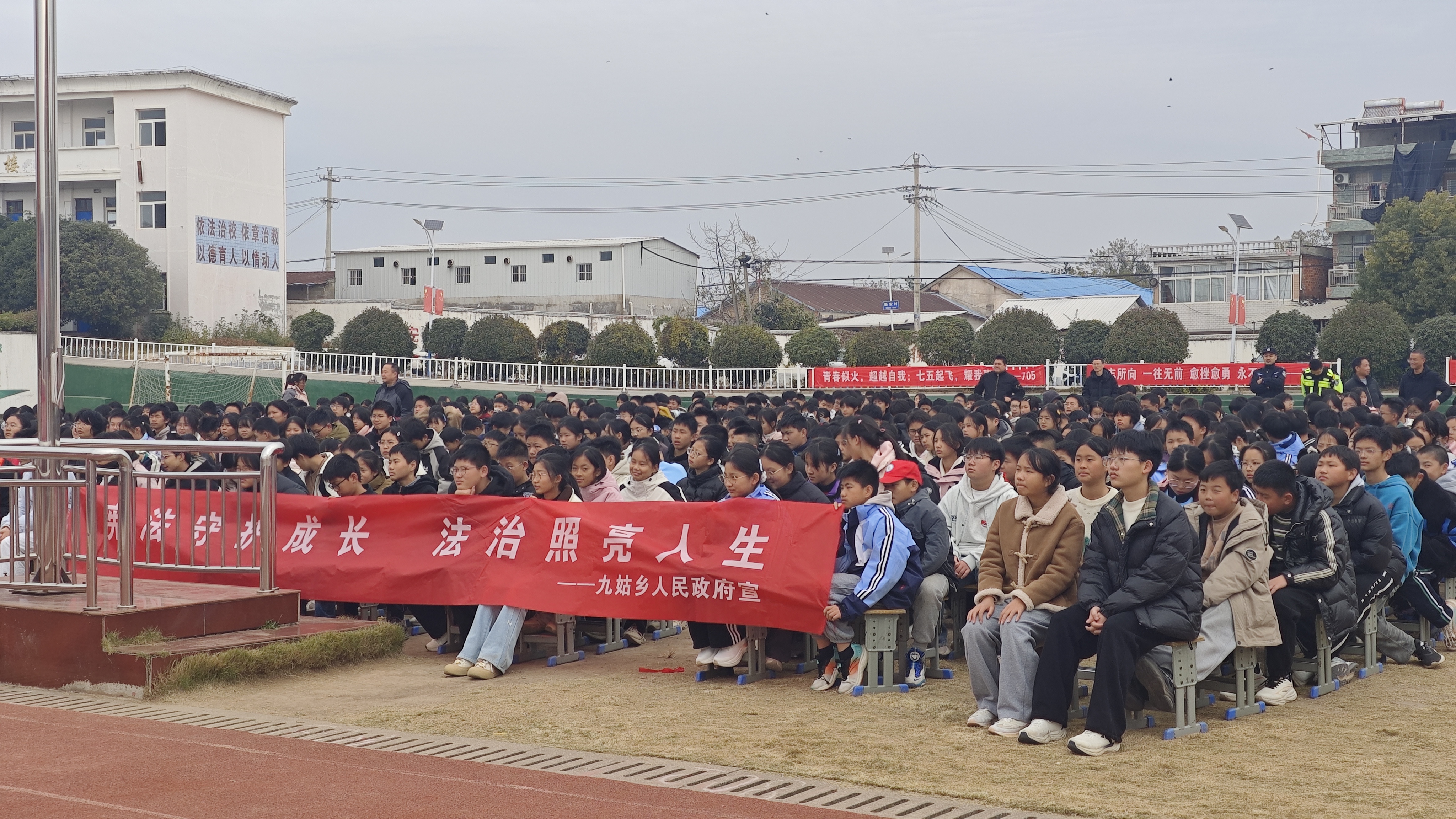 2025年12月4日,第十二个国家宪法日,九姑乡新安中学、九姑司法所联合九姑派出所、九姑乡综治办、九姑乡团委共同举办“宪法护航,让成长更有‘法’度”国家宪法日主题法治宣传教育活动,为全校学生带来了一堂生动而深刻的法治启蒙课。