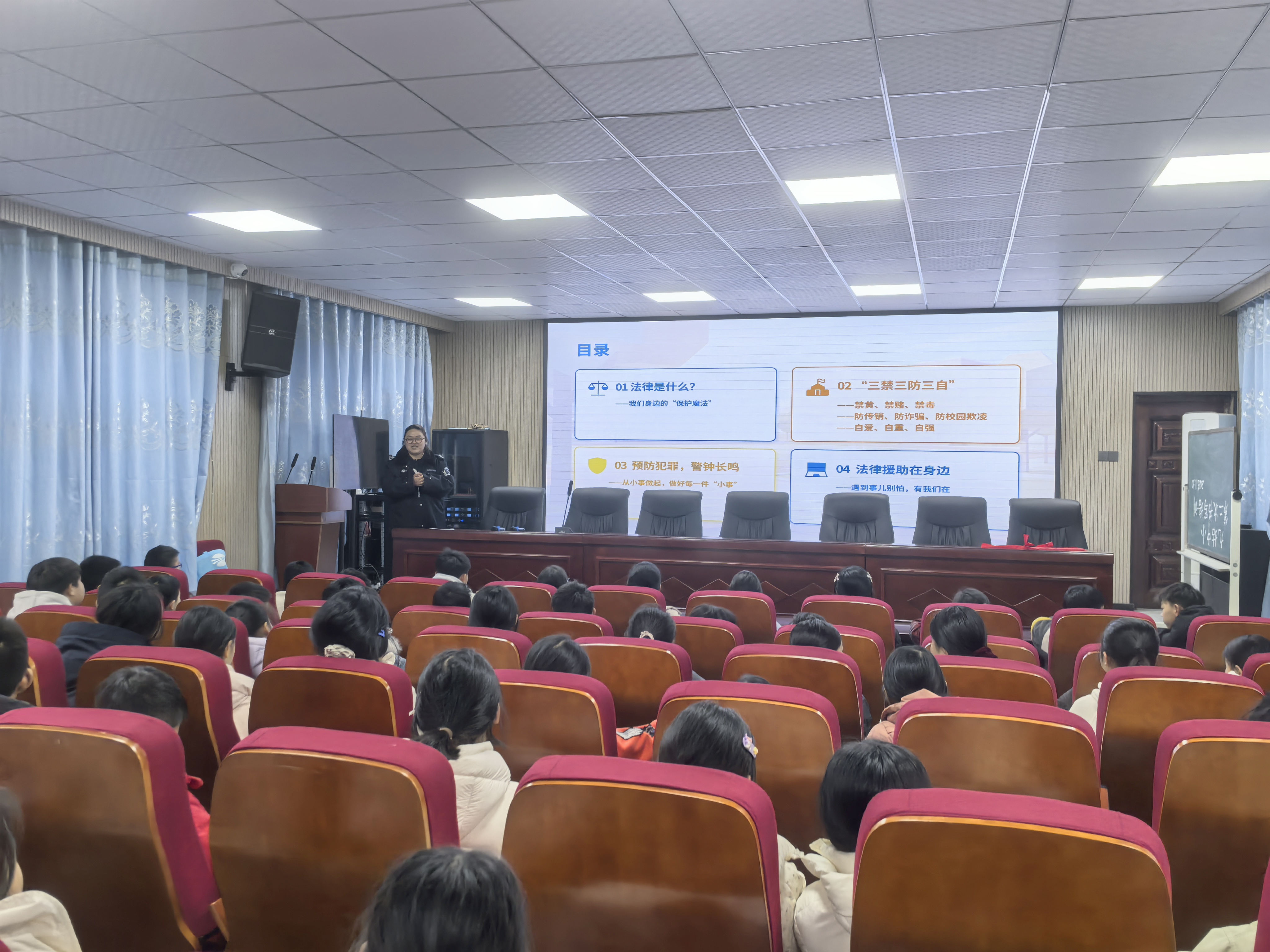 新学期伊始,九姑司法所联合乡派出所、新时代文明实践所、综治办、团委、妇联共同走进校园,面向即将升入初中的六年级学生开展“三禁三防三自”主题法治讲座。与照本宣科的普法方式不同,司法所负责人将法律条文融入身边案例:游戏厅里的“免费午餐”如何演变为违法帮凶,校门口的“保护费”触犯了哪条红线,“免费皮肤”陷阱又是怎样掏空家长钱包……从认识新型毒品到防范网络诈骗,从预防校园欺凌到保护身体安全,一个个真实案例,让法律从纸面走进生活。孩子们听得入神,不时发出惊叹。