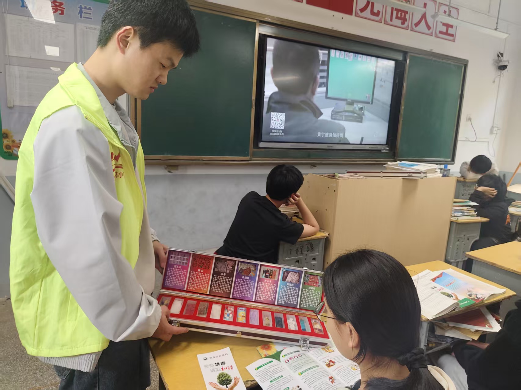 以案释法强警示,认清毒品本质。工作人员结合近年来各地发生的青少年涉毒真实案例,帮助同学们直观认识涉毒行为带来的严重法律后果与惨痛代价。围绕新型毒品伪装性强的现实风险,通过展示仿真毒品模型、分发宣传折页的方式,反复提醒同学们对来源不明的食品、药品、电子烟坚决说“不”,切勿因贪图新鲜或追求所谓“刺激”而沾染毒品。活动最后,工作人员还进行了常态化的扫黑除恶宣传。