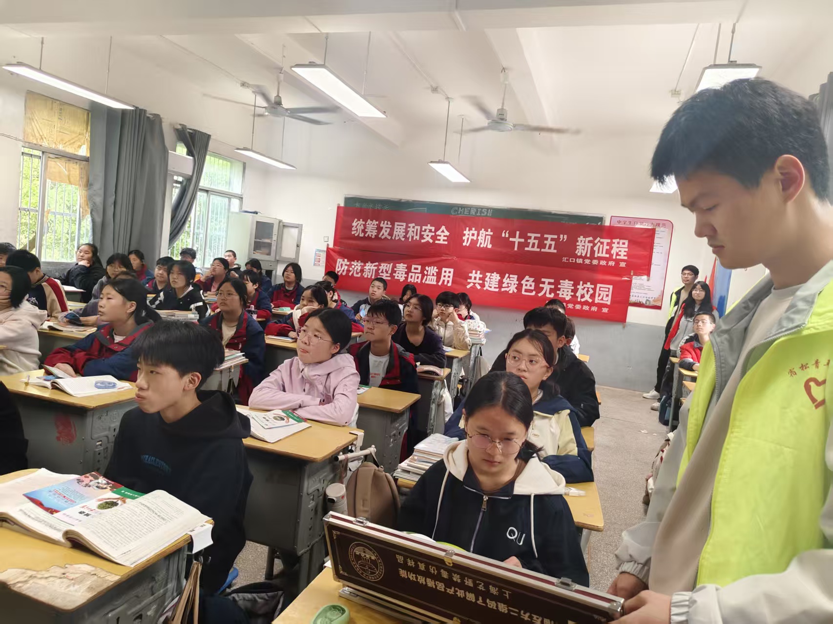 2026年4月15日是第十一个全民国家安全教育日,今年的活动主题为“统筹发展和安全 护航‘十五五’新征程”。为深入贯彻落实总体国家安全观,进一步增强青少年国家安全意识和拒毒防毒能力,汇口镇综治中心联合镇司法所、应急执法队、妇联等部门,一起走进汇口初中,开展了“国家安全与禁毒同行”主题宣传教育活动。