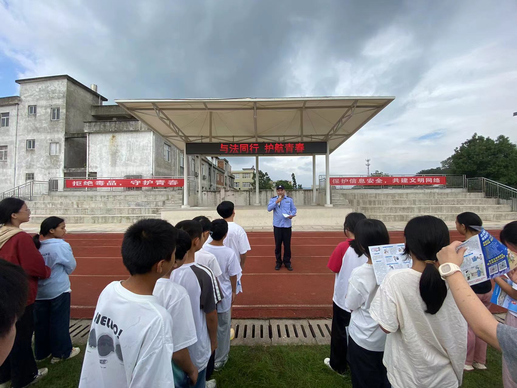为进一步提升在校学生在禁毒、扫黑、反邪教等方面的意识,筑牢校园安全防线,推动平安建设落地落实,近日,隘口乡平安办联合辖区派出所在隘口中学开展普法宣传进校园宣传活动。