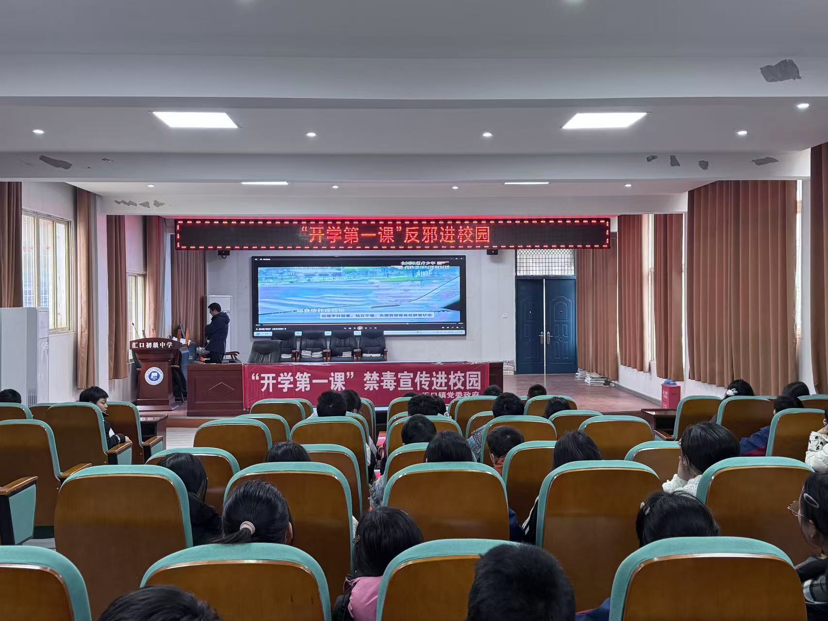 为筑牢校园安全防线,增强青少年识邪、辨邪、拒邪能力,护航学生健康成长,新学期伊始,汇口镇综治中心工作人员联合团委、妇联走进汇口中学,开展“开学第一课·反邪教宣传进校园”主题教育活动,为学校师生送上一堂生动深刻的反邪教教育课。