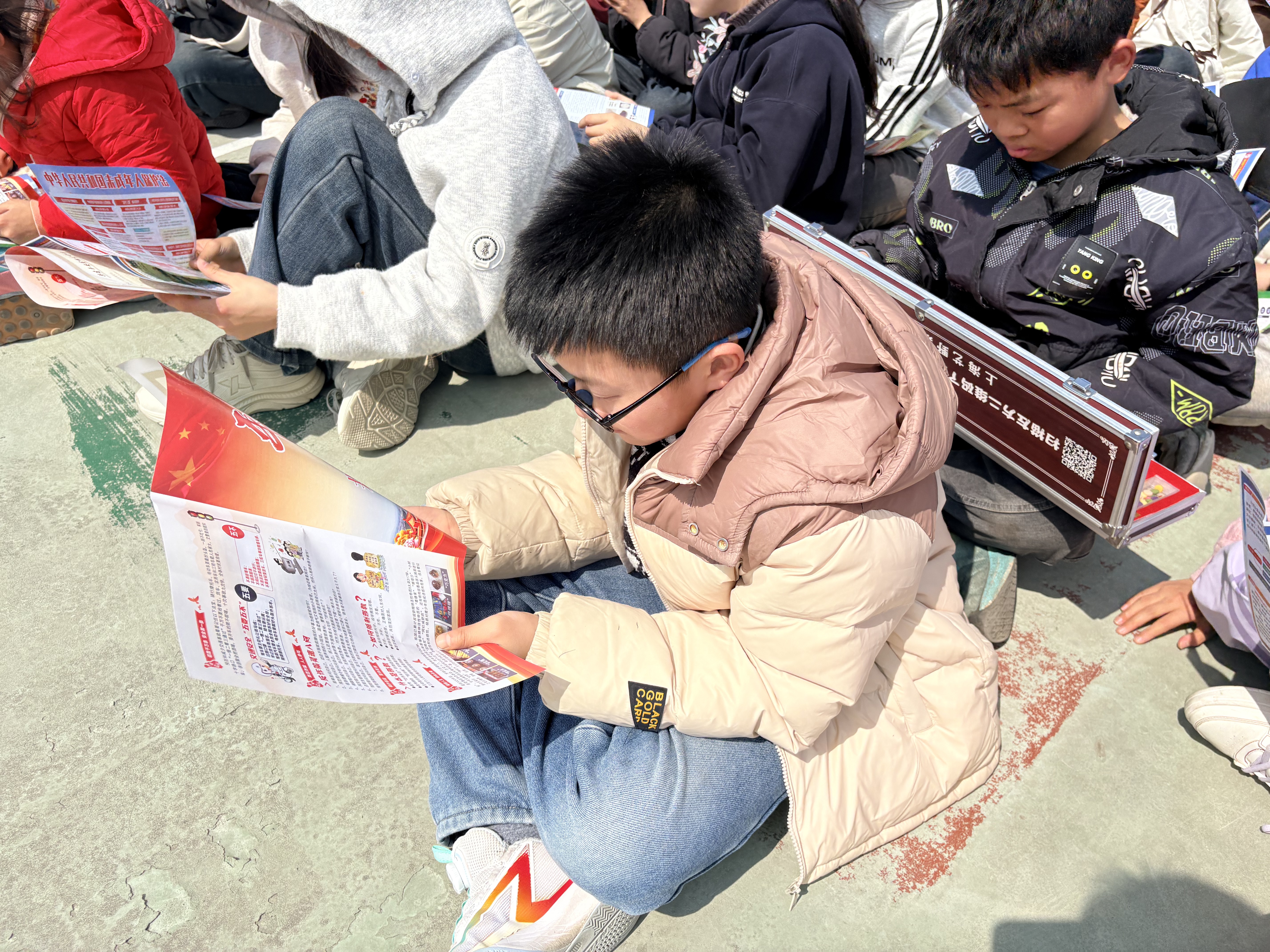 在校园广场,志愿者们向学生发放反邪教宣传折页,折页内容图文并茂、通俗易懂,详细介绍了邪教的定义、常见伪装手段、危害以及防范方法,用生动的漫画和简洁的文字,揭露了邪教蛊惑人心、破坏家庭、危害社会的本质。志愿者们一边发放折页,一边叮嘱同学们认真阅读,将所学知识牢记于心,同时鼓励大家把折页带回家,与家长共同学习,实现“小手拉大手”,推动反邪教宣传延伸至家庭、辐射到社会。