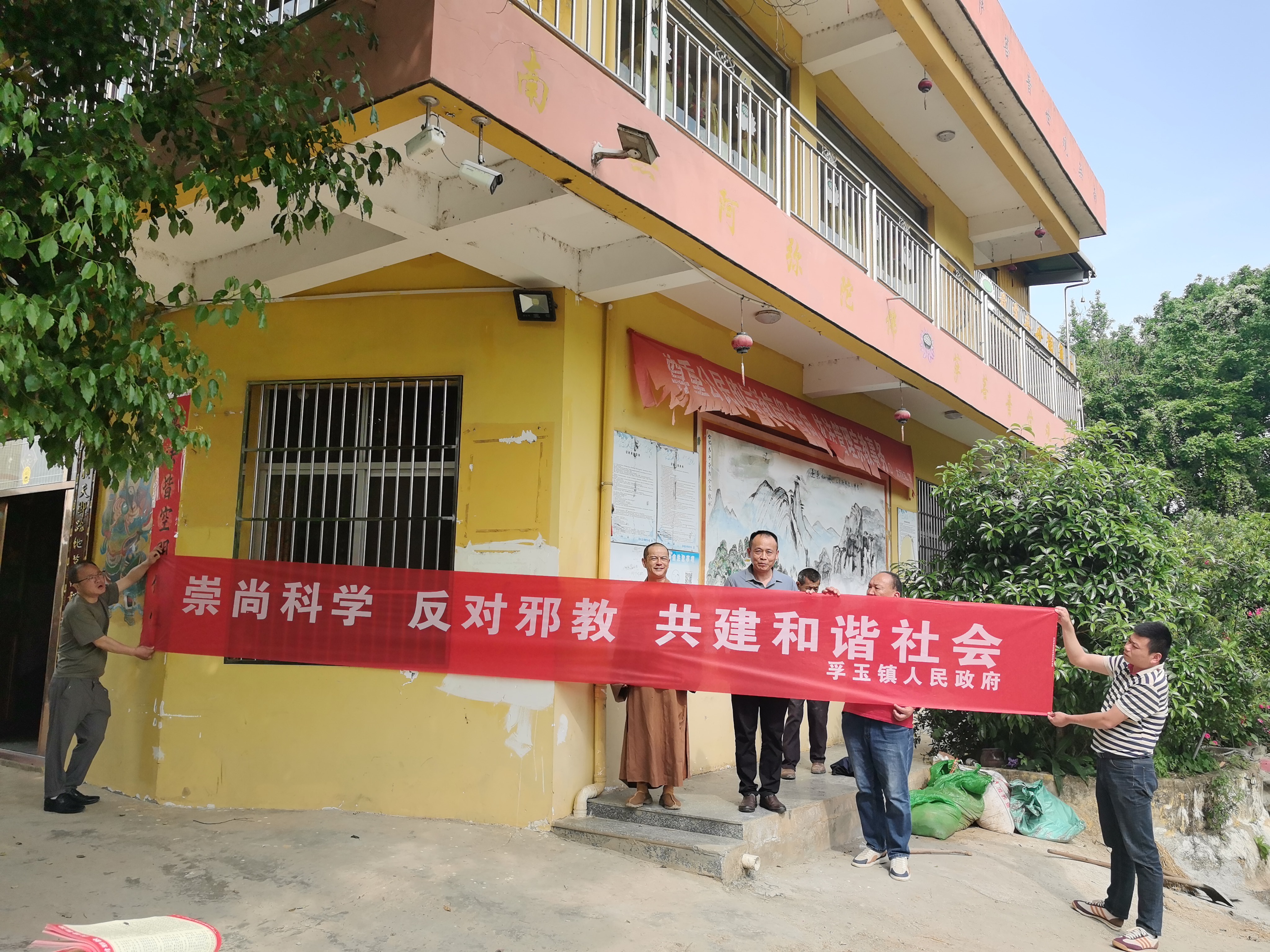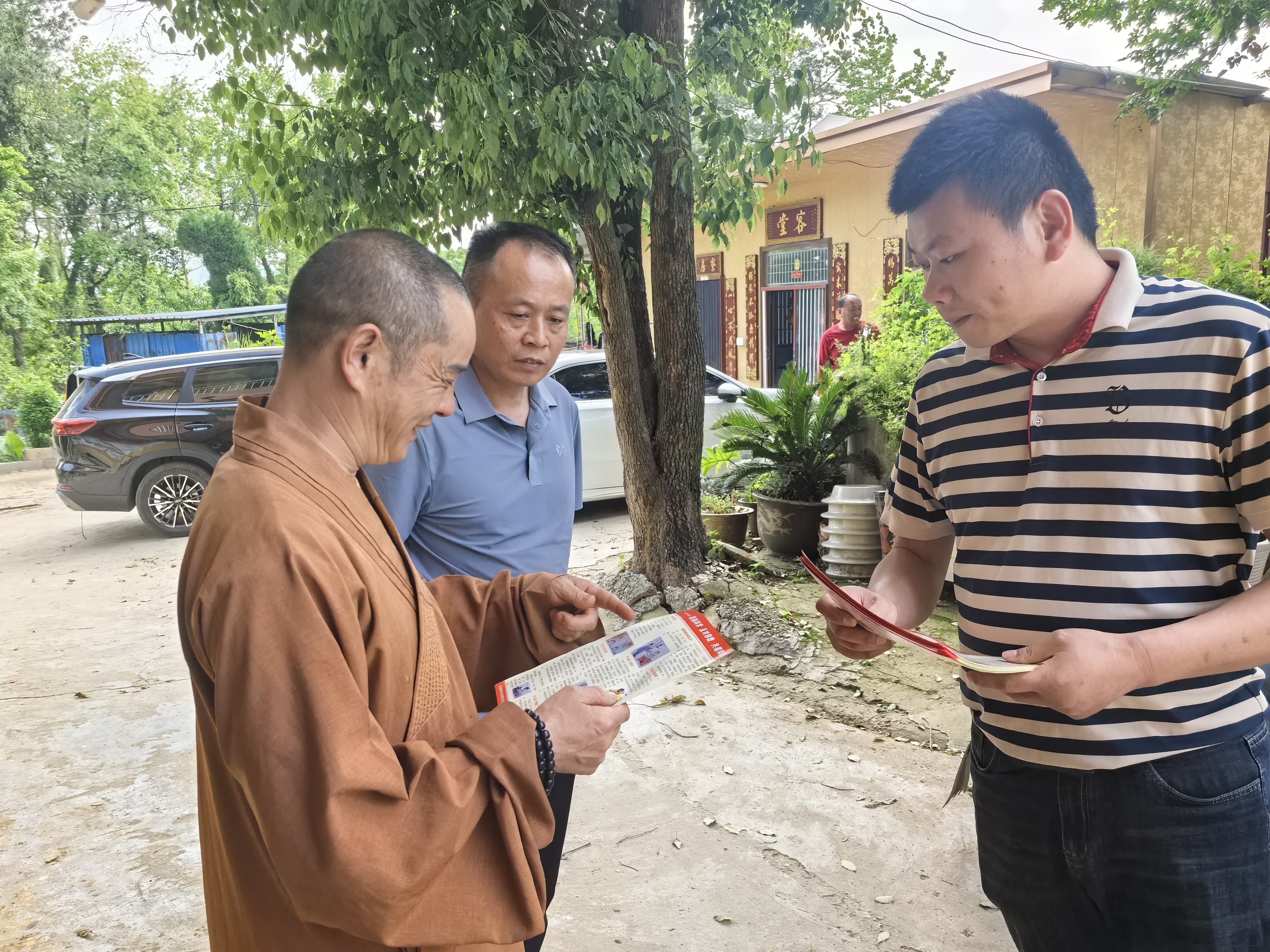 为进一步筑牢宗教领域反邪教思想防线,引导宗教场所信教群众树立崇尚科学、反对邪教的正确观念,维护辖区宗教场所和谐稳定与社会秩序,4月20日,孚玉镇平安办联合孚玉司法所及村(社区)工作人员,深入辖区五祖寺等寺庙开展反邪教专项宣传活动。