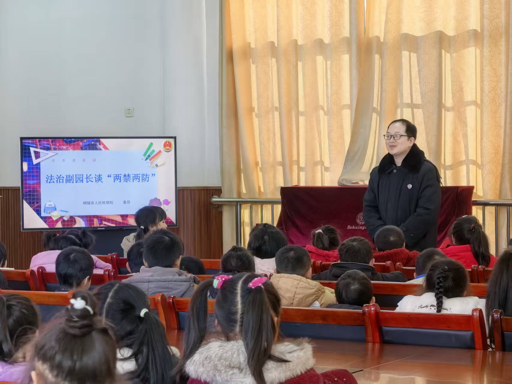 为进一步打响“桐心护未”未成年人检察工作品牌,在寒假即将到来之际,检察干警以桐城市范岗教育集团校范岗中心幼儿园法治副园长的身份为孩子们送去了“法治大礼包”。