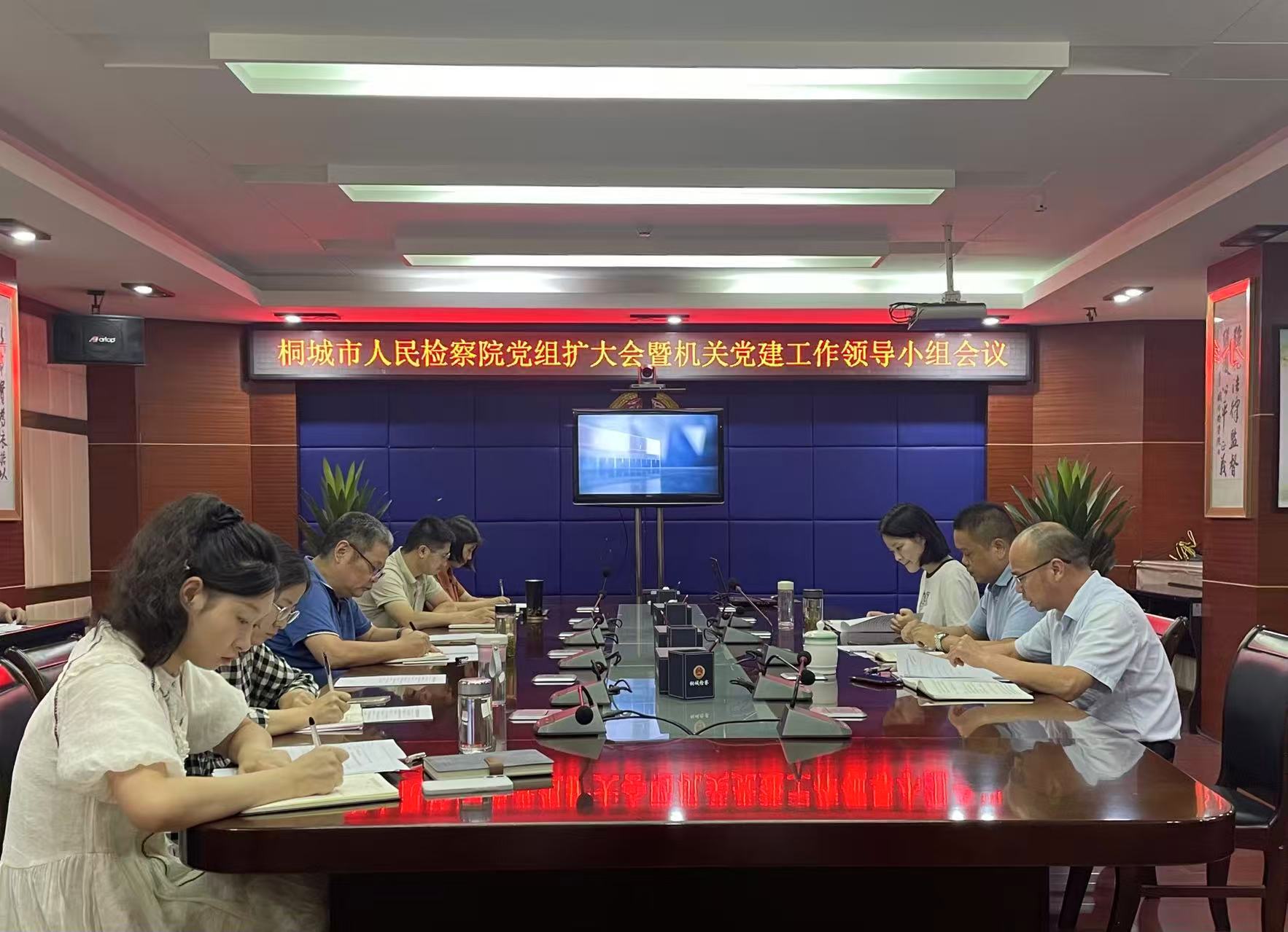 桐城市检察院在家院领导、各部门主要负责人、各党支部书记、学习教育工作专班成员参加会议。