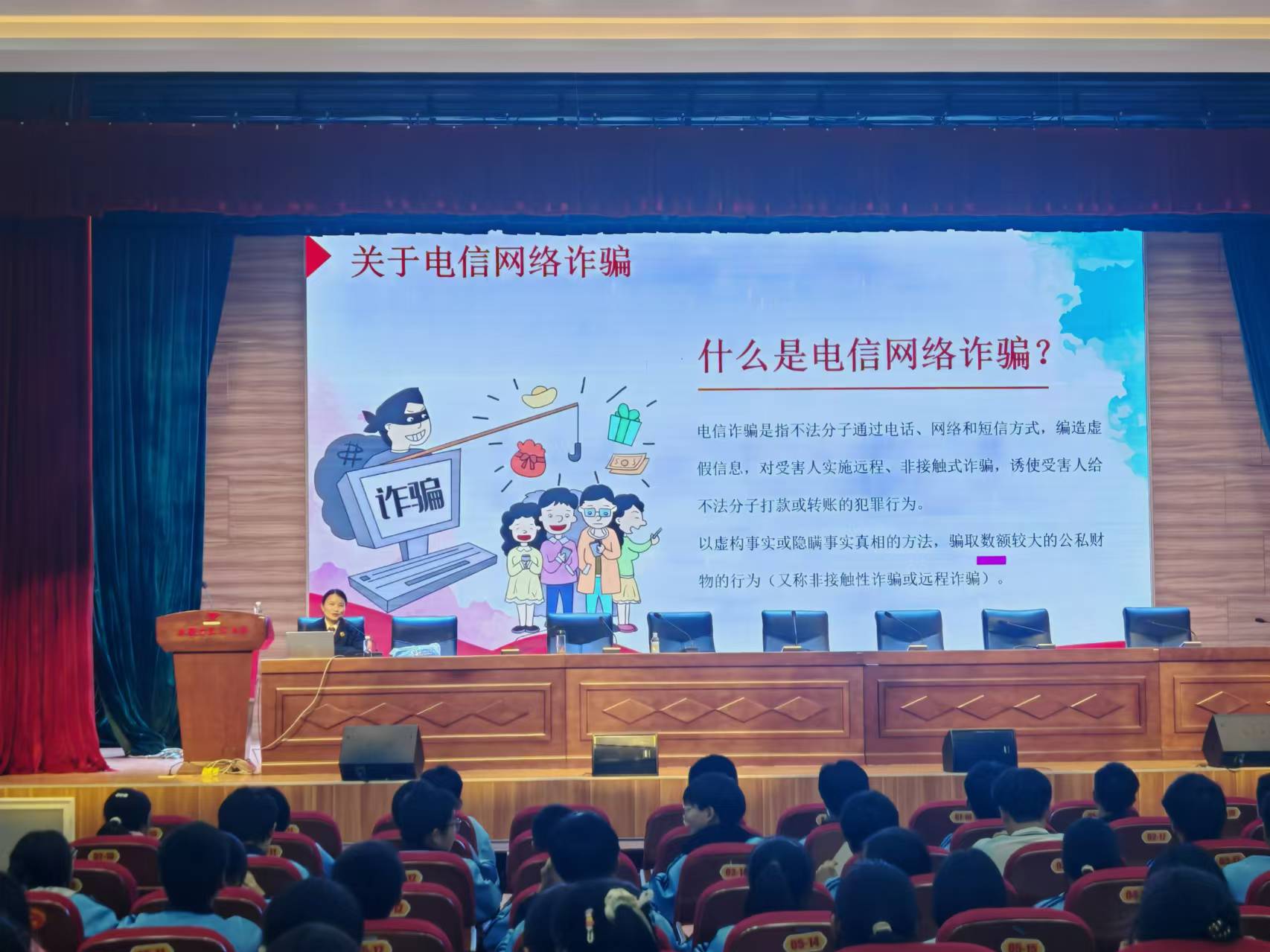 2024年11月13日下午,桐城市人民检察院联合桐城市教育局走进天城中学,为同学们带来了一堂以“预防网络诈骗”为主题的普法宣传课。