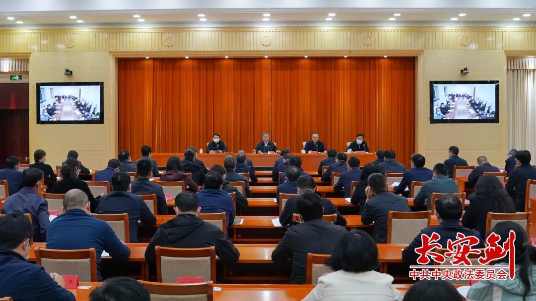 会议强调,要把认真学习宣传贯彻好党的二十大精神作为当前的首要政治任务,力求学在深处,深刻领会过去五年工作和新时代十年伟大变革的重大意义,坚定历史自信,增强历史主动;深刻领会习近平新时代中国特色社会主义思想的世界观和方法论,更好用党的创新理论武装头脑、指导实践;深刻领会新时代新征程中国共产党的使命任务,把握好中国式现代化的科学内涵、本质要求、战略安排、基本原则和重大举措;深刻领会全面建设社会主义现代化国家的战略部署,履行好新时代政法工作职责使命;深刻领会以伟大自我革命引领伟大社会革命的重要要求,坚持全面从严治党,深入推进新时代党的建设新的伟大工程;深刻领会团结奋斗的时代要求,一步一个脚印把党的二十大作出的重大决策部署付诸行动、见诸成效。力求谋在新处,聚焦维护国家政治安全、推进社会治理现代化、深化政法改革、加强政法队伍建设等职责任务,聚焦明年政法工作的重点、难点、着力点,组织开展大调研,谋划好贯彻落实党的二十大精神的思路举措。力求干在实处,把学习贯彻党的二十大精神与做好当前工作紧密结合起来,对照今年各项目标任务,持续在防风险、保安全、护稳定、深改革、强队伍、促发展上出实招见实效,以新安全格局保障新发展格局、以高水平安全保障高质量发展。