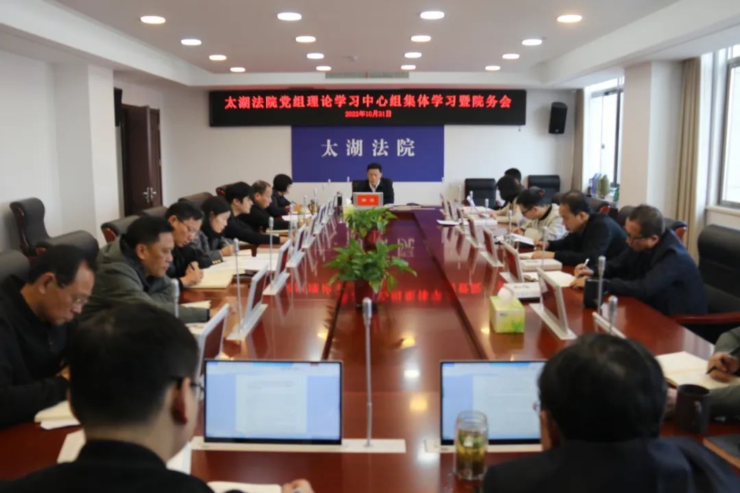 为贯彻落实全市法院优化营商环境专项会议精神,抓好11月执法办案各项工作,10月31日,太湖法院党组书记、院长陈浩主持召开党组理论学习中心组集体学习暨院务会,其他班子成员、专委及二级机构负责人等参加会议。