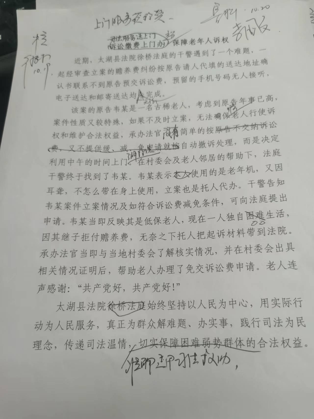 该案的原告韦某是一名古稀老人,考虑到原告年事已高,案件性质又较特殊,如果不及时立案,无法保障老人行使诉权和维护合法权益,承办法官没有简单按自动撤诉处理,而是决定利用中午的时间上门了解情况。在村委会及老人邻居的帮助下,法庭干警终于找到了韦某。韦某表示使用的是老年机,又因耳聋,不怎么带在身上使用,立案也是托人代办。干警告知韦某案件立案情况及如符合诉讼费减免条件,可向法庭提出申请。韦某当即反映其是低保老人,现在一人独自困难生活,因其继子拒付赡养费,无奈之下托人把起诉材料带到法院。承办法官当即与当地村委会了解核实情况,并在村委会出具相关情况证明后,帮助老人办理了免交诉讼费申请。老人连声感谢:“共产党好,共产党好!”(作者:倪敏 初审:李国文、徐长松 终审:鲁水华)
