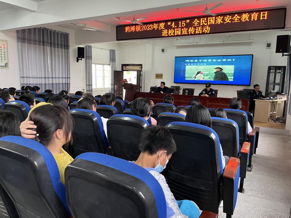 4月11日,鸦滩镇在镇中心小学、初级中学开展“4.15全民国家安全教育日”主题宣传活动。公安、司法、武装等部门通过现场授课、观看宣传片、知识问答竞赛等形式对预防校园暴力、网络安全、交通安全、国防安全等多项与内容进行宣传,贴近校园生活实际,深受广大师生欢迎。在活动现场,同学们认真听、仔细记,积极举手回答问题,主动参与互动交流并发言,既了解了相关法律知识,又增强了国家安全意识和自我保护能力。