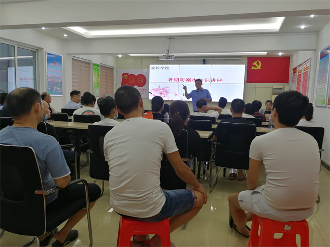 讲座通过播放防溺水安全知识宣传片,向在场家长讲述如何预防儿童防溺水以及预防儿童防溺水的8个要点,让家长提高警惕,充分认识溺水等安全事故的危害性。同时,发放《防溺水小知识》宣传页,向家长与孩子讲解不要在无成年人陪伴的情况下私自外出,不私自结伴到水边玩耍,遇到别人溺水时不盲目救人,要及时寻求大人的帮助,并呼吁家长首先要建立和提升安全防范意识,学习和掌握科学的儿童防溺水知识,作为监护人要切实担负起孩子的监护责任。