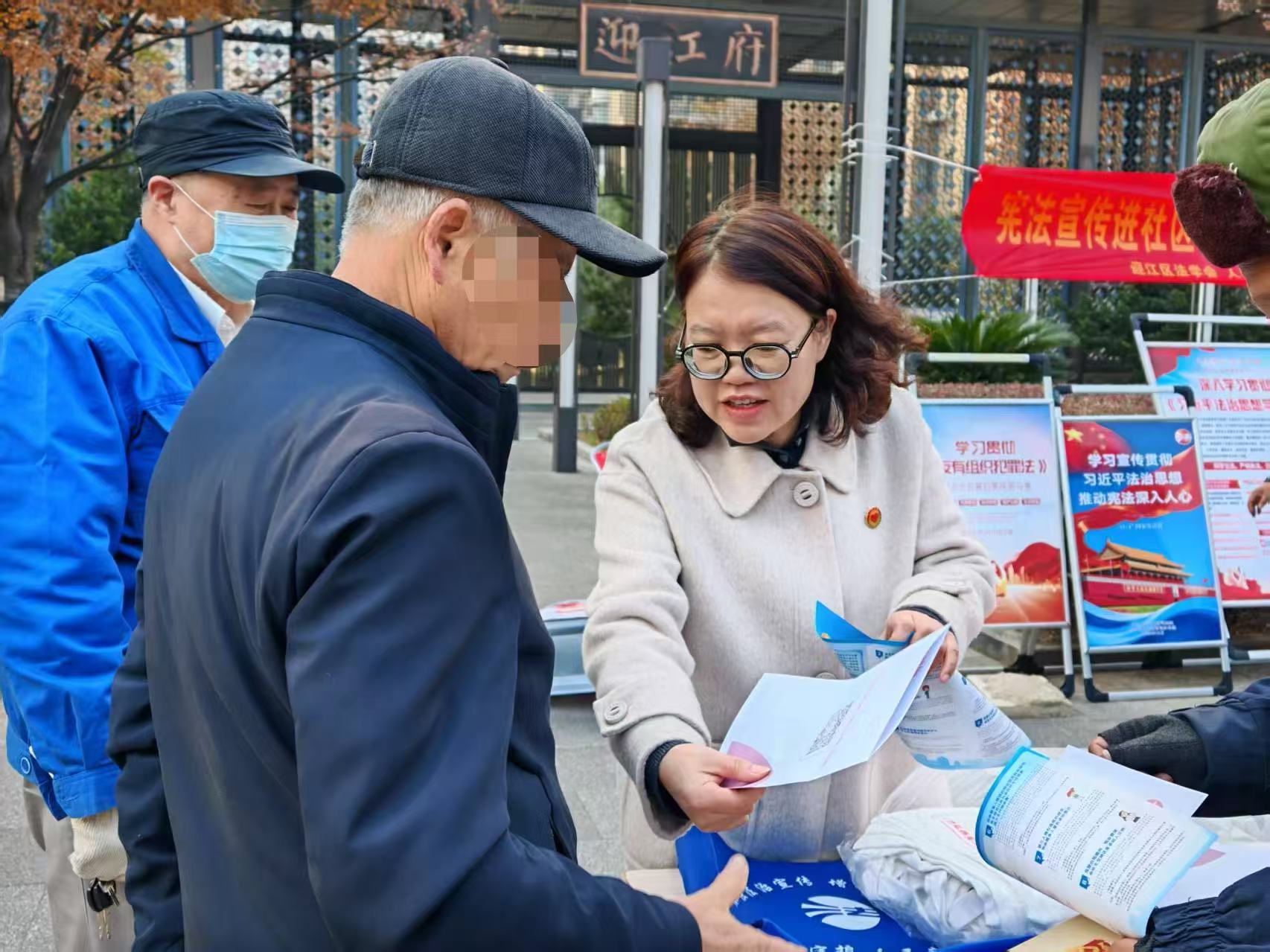 12月3日上午,迎江法院党支部、滨江街道法官工作室联合区法学会、人民路街道办事处和东正社居委,在辖区迎江府小区开展“弘扬宪法精神 建设社会主义法治文化”主题普法宣传。