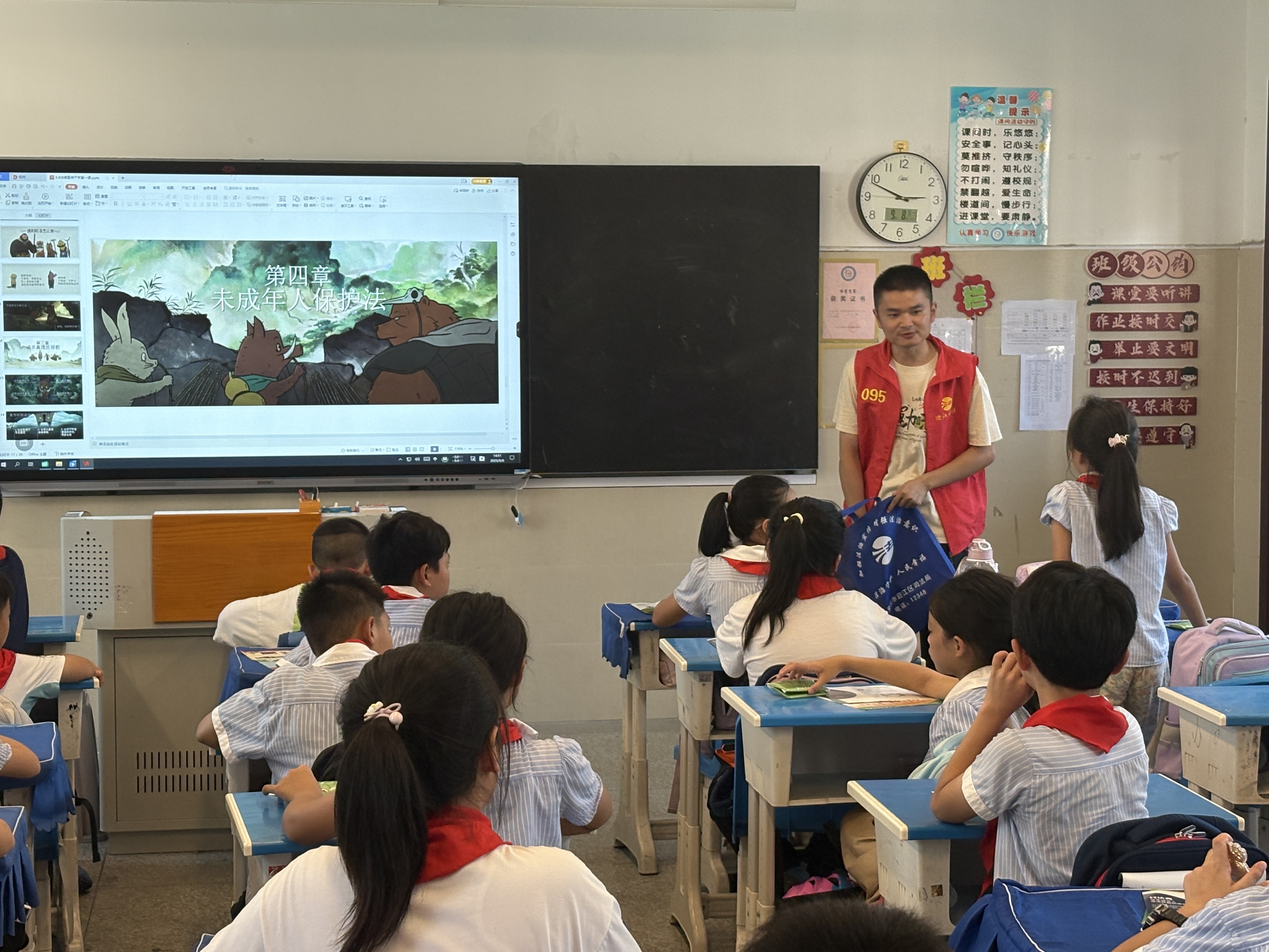 新学期伊始,为进一步增强青少年法治意识,护航学生健康成长,9月,迎江区司法局滨江司法所联合滨江街道综治中心、云墅社区走进滨江实验学校,开展“开学第一课”主题活动,为同学们带来了一堂生动且实用的法治教育课。