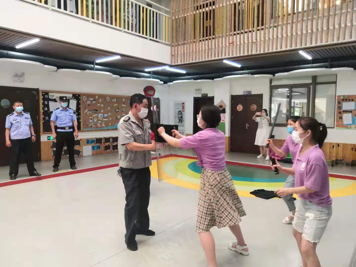 为加强辖区学校对突发恐怖事件的应变和处置能力,提高学校安保人员在紧急情况下面对暴恐事件的合理处理、自护自救及有效逃生避险的能力、维护学校师生生命安全,6月9日,新河社区联合龙狮桥派出所、明爱阳光幼儿园开展防暴防恐应急演练活动。