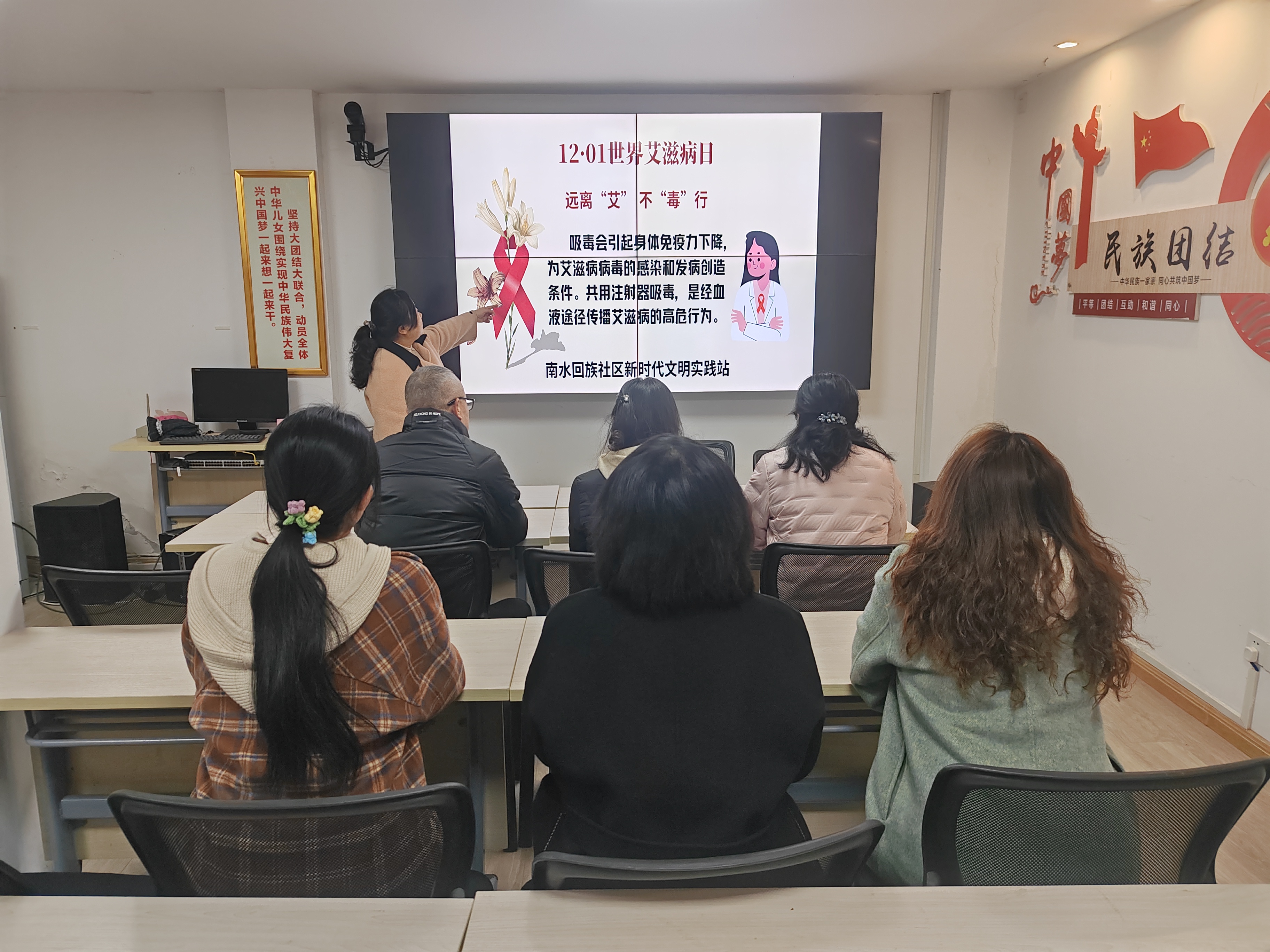 在第38个“世界艾滋病日”来临之际,为响应“社会共治,守正创新,终结艾滋”的宣传主题,11月28日,南水回族社区新时代文明实践站开展“远离‘艾’不‘毒’行”防艾禁毒主题宣传活动,将科学防护知识融入社区治理,为居民健康保驾护航。