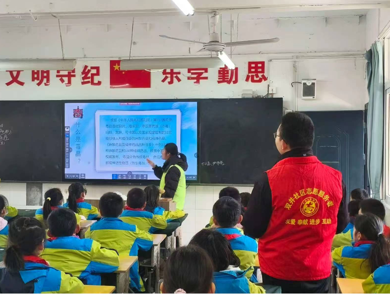 为切实加强辖区校园毒品安全教育,增强青少年识毒、防毒、拒毒的意识和能力,护航学生健康成长。近日,双井社区联合区禁毒办工作人员到辖区健康路小学开展禁毒“开学第一课”宣传活动。