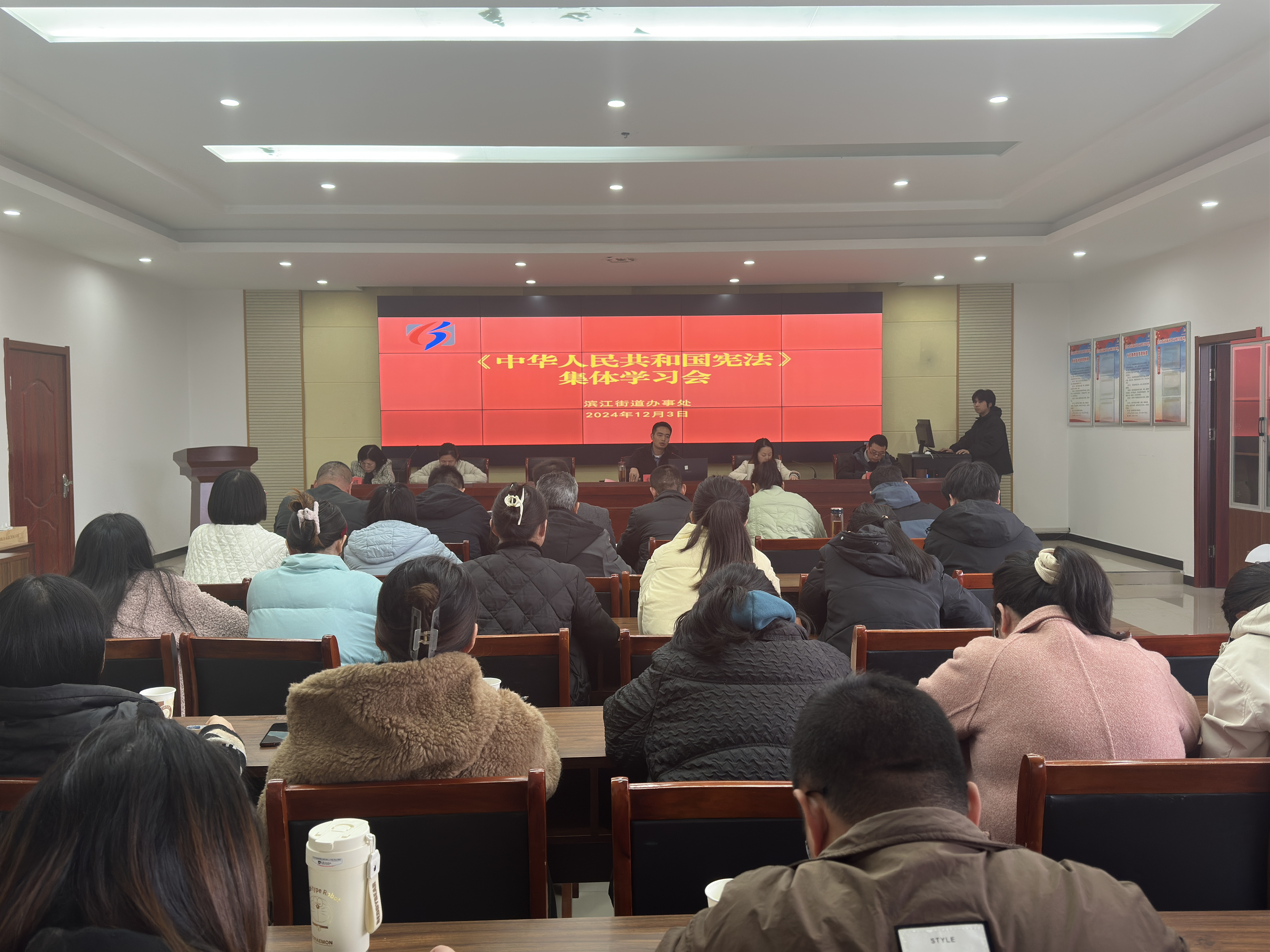 宪法进机关,用法提效能。12月3日,滨江街道召开《中华人民共和国宪法》集体学习会。会上,舒主任以宪法条文为主线,以宪法学的历史和最近发展、公民的基本权利和义务、国家机构等方面为切入点,结合具体案例做了深入浅出的讲解,以期不断提高机关的行政效能。
