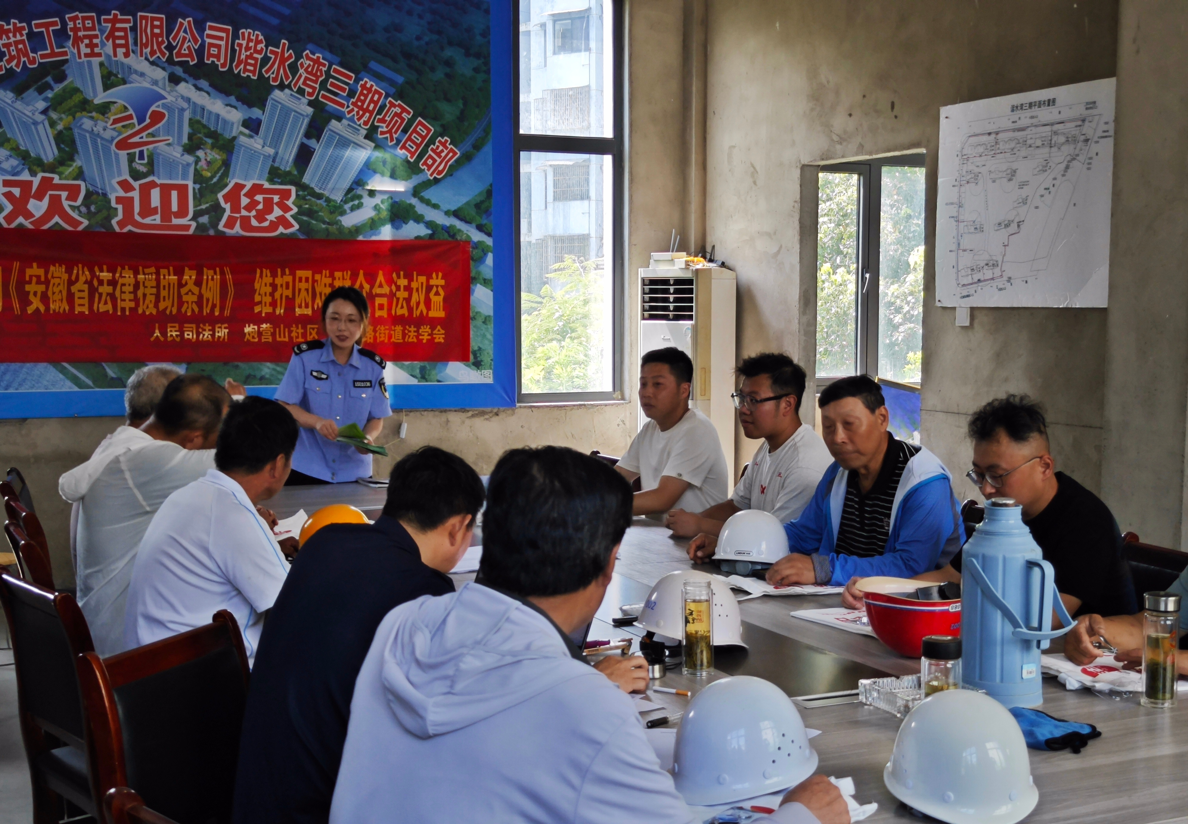 为宣传贯彻新修订的《安徽省法律援助条例》,切实维护农民工等困难群众的合法权益,2025年7月9日,人民司法所联合炮营山社区走进谐水湾3期工地,组织开展了“宣传贯彻《安徽省法律援助条例》,维护困难群众合法权益”主题普法活动。通过面对面普法,为农民工群体提供“零距离”的法律服务。