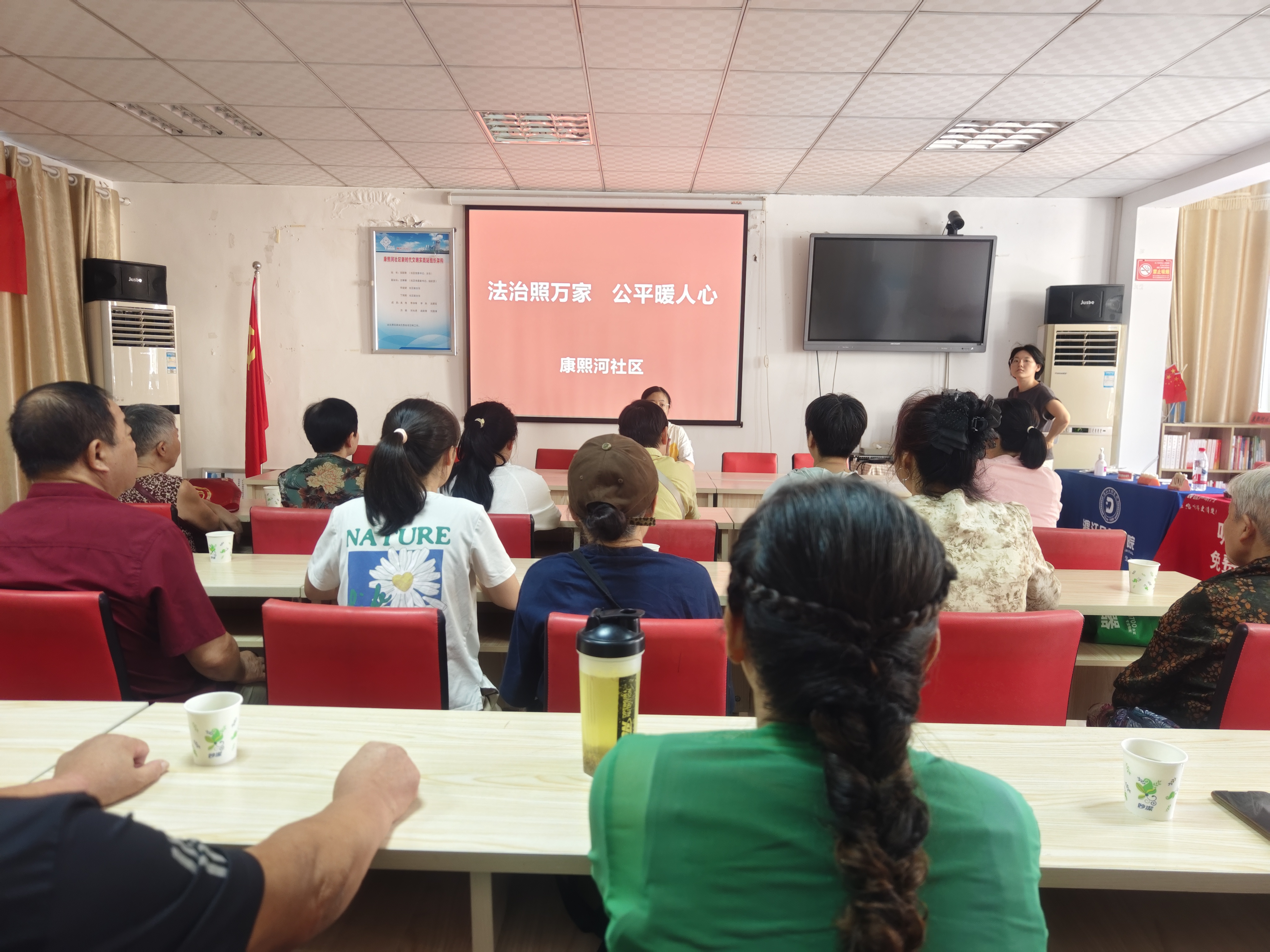 为提升老年人法治意识,防范养老诈骗、财产纠纷等风险。10月17日,康熙河社区开展“法治照万家,公平暖人心”专项法治宣传活动,