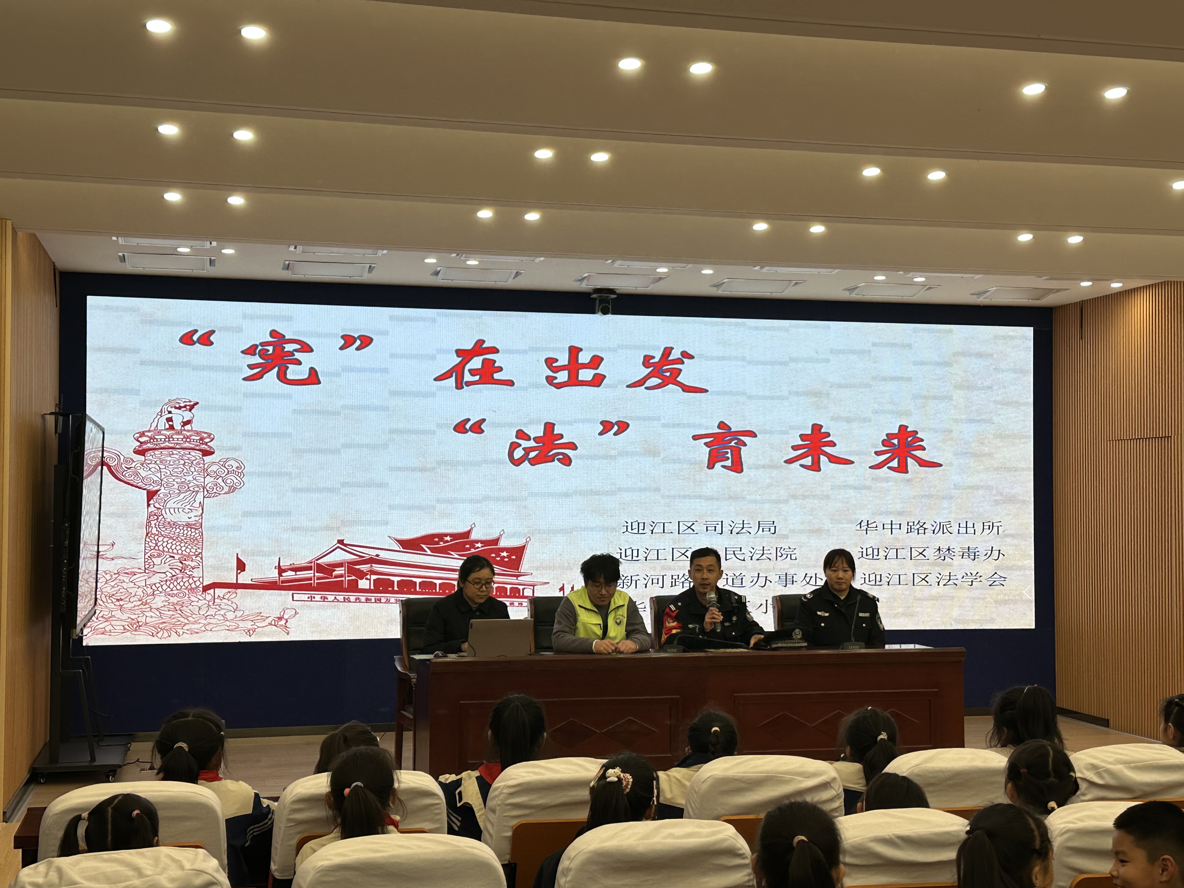 2025年12月2日,在第十二个“国家宪法日”即将来临之际,迎江区司法局联合区人民法院、区禁毒办、华中路派出所、新河路街道共同走进华中路第三小学,为同学们带来了一场生动而深刻的宪法主题宣传活动,在冬日校园里播撒下法治的种子。