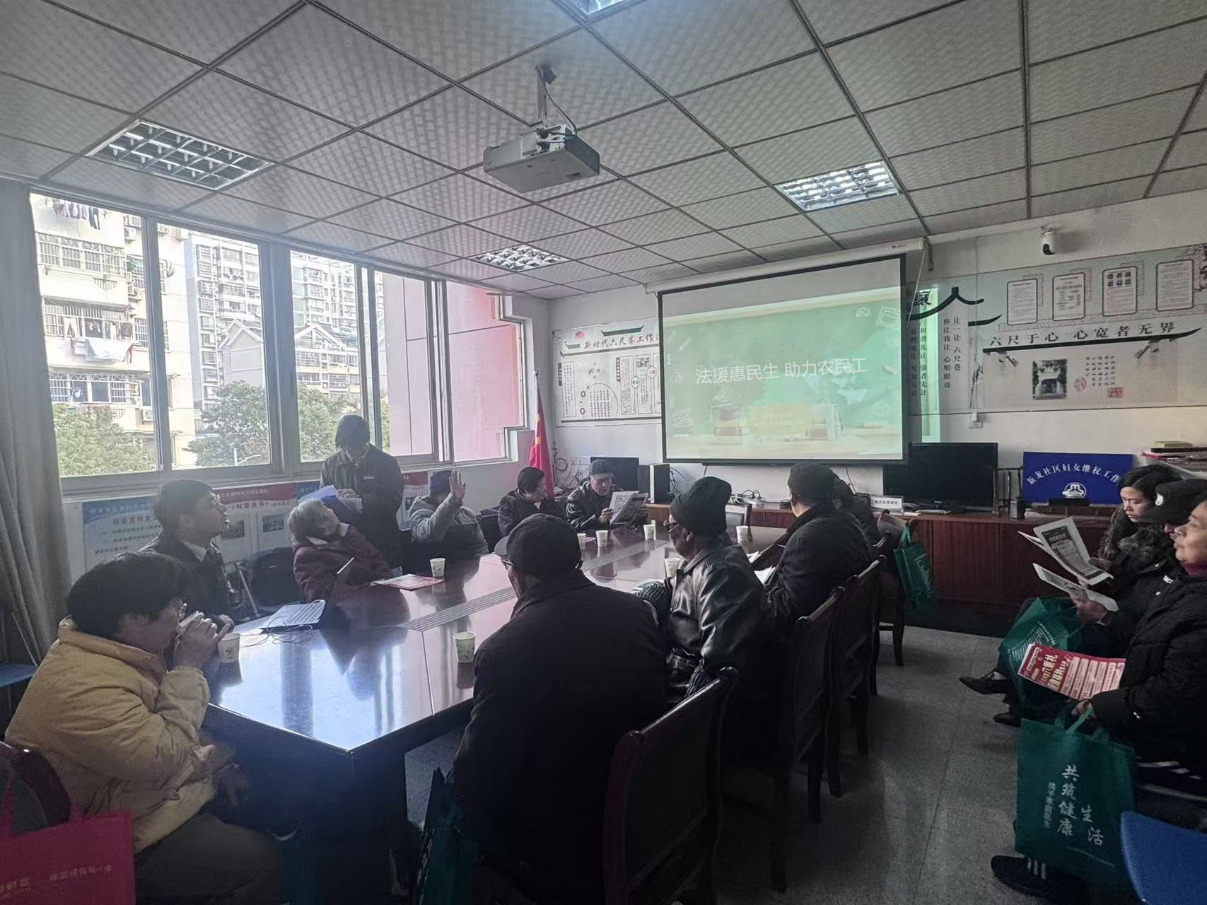 农民工是城市建设的重要力量,但法律意识薄弱、维权渠道不畅等问题仍普遍存在。为提升农民工依法维权能力,保障其劳动报酬、工伤赔偿等合法权益,促进社会公平正义与和谐稳定,12月25日,新龙社区开展“法援惠民生 关爱农民工”活动。