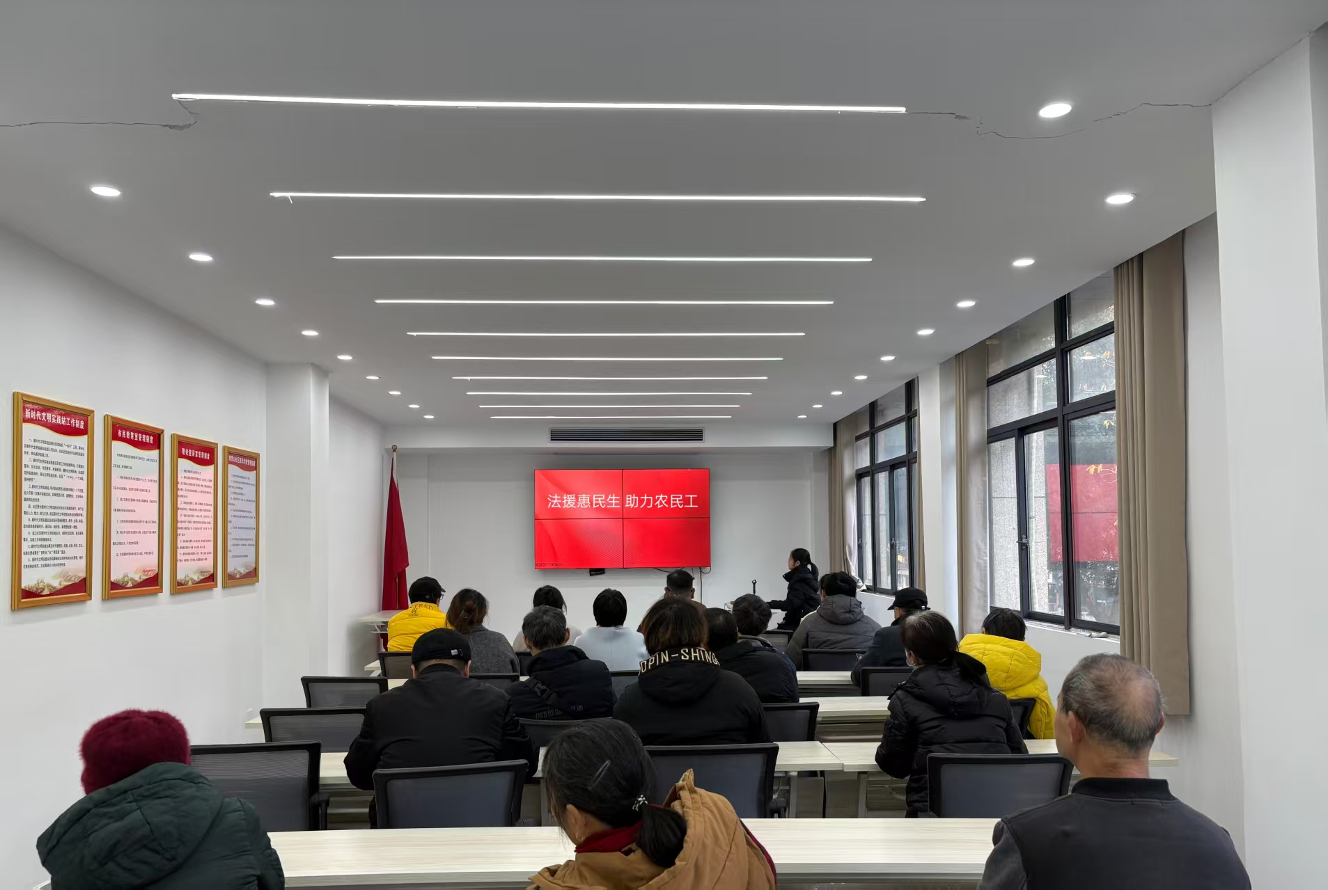 活动现场,工作人员组织农民工集中观看法治宣传片,通过真实案例讲解劳动报酬、工伤赔偿等相关法律知识;同时发放法治宣传手册,为大家答疑解惑,引导农民工运用法律武器维护自身合法权益。此次活动将法治服务送到群众身边,切实提升了农民工的法治获得感与幸福感。