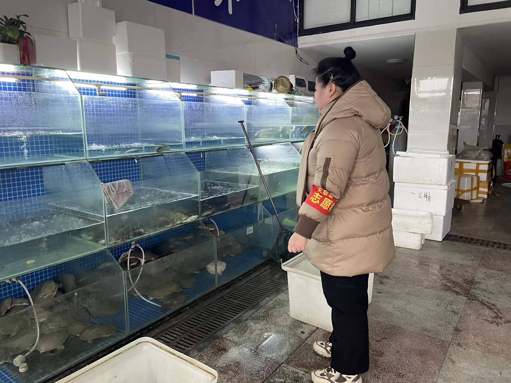 元宵佳节将至,为进一步巩固长江禁捕退捕工作成果,确保节日期间市场流通的水产品来源合法、源头可溯,2月28日上午,天后宫社区新时代文明实践站组织志愿者深入辖区水师营农贸市场开展长江禁捕专项巡查宣传活动。