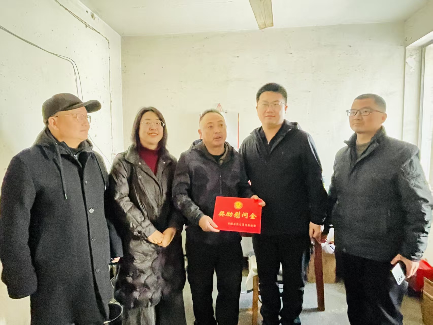 慰问中,顾玫帆秘书长与江来喜促膝交谈,详细询问他的生活状况和实际困难,对他临危不惧、舍己为人的英勇壮举给予了高度评价和崇高敬意,叮嘱他保重身体、保持乐观心态,并送上慰问金,向他致以新春问候和美好祝福。