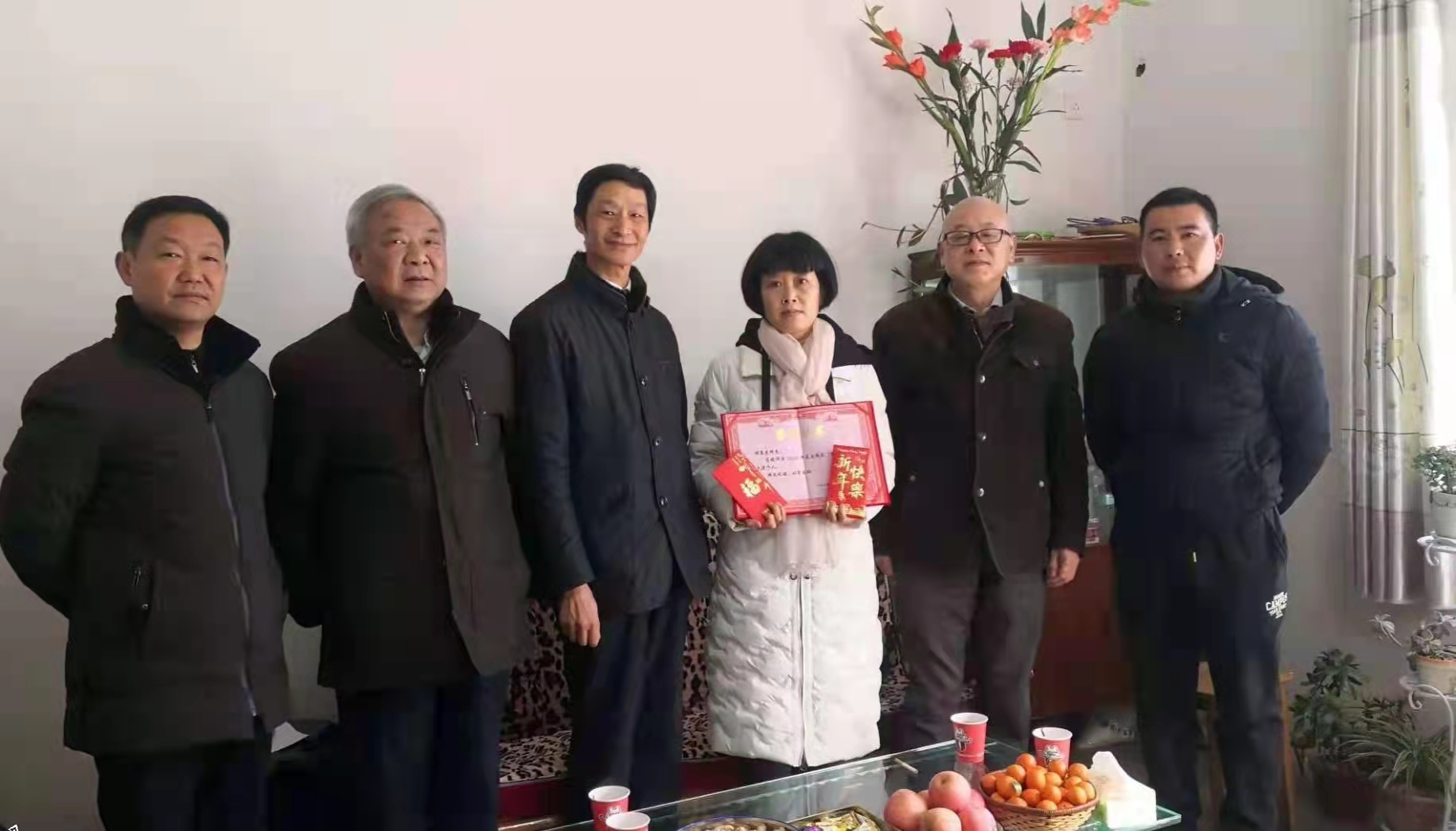 2月9日,岳西县委政法委四级调研员刘炳南一行走访慰问谢恩东家属,送去新春的温暖和祝福。岳西县自来水公司指导员程皖峰、副经理李红武参加走访。