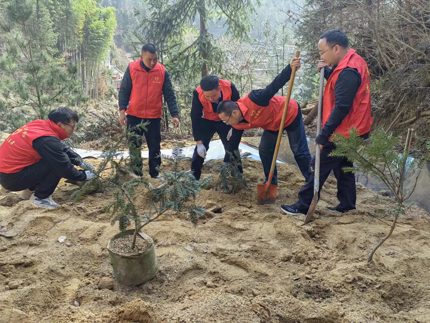 植树造林,功在当代,利在千秋,本次植树活动,不仅让全体党员身心得到锻炼,更以实际行动为青山再增新绿,为党旗再添新彩。