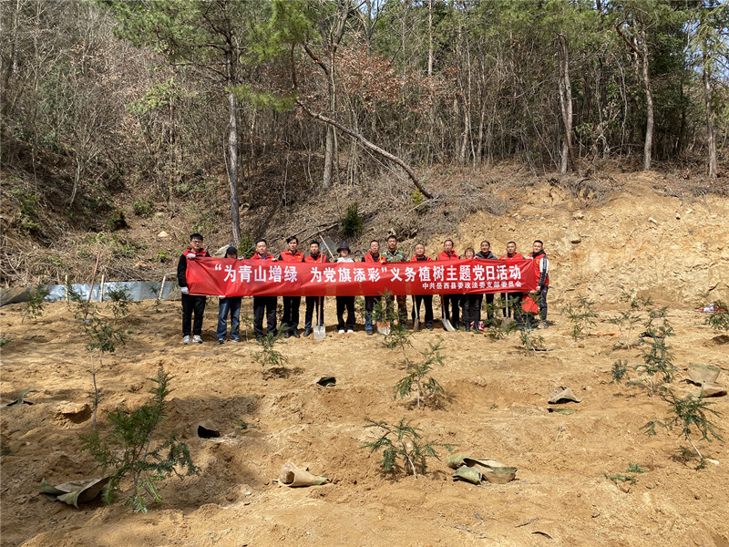 为深入践行习近平总书记“绿水青山就是金山银山”的生态文明发展理念,3.12日,县委政法委机关全体党员干部到和平乡九河村开展“为青山增绿 为党旗添彩”主题党日暨义务植树活动。