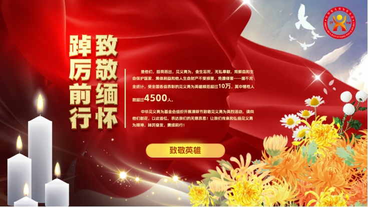 英雄们的行为和崇高精神为全社会作出了表率,树立了榜样,我们将一直铭记在心。此次清明节活动,请大家积极参与,向见义勇为献出宝贵生命的英烈和牺牲人员网络献花,以此追忆,表达我们的无限哀思。让我们踔厉奋发、赓续前行,以实际行动传承和弘扬见义勇为精神,倡导见义勇为的社会风尚,让全社会正气充盈、邪不可干,为建设更高水平平安中国、法治中国而奋斗。