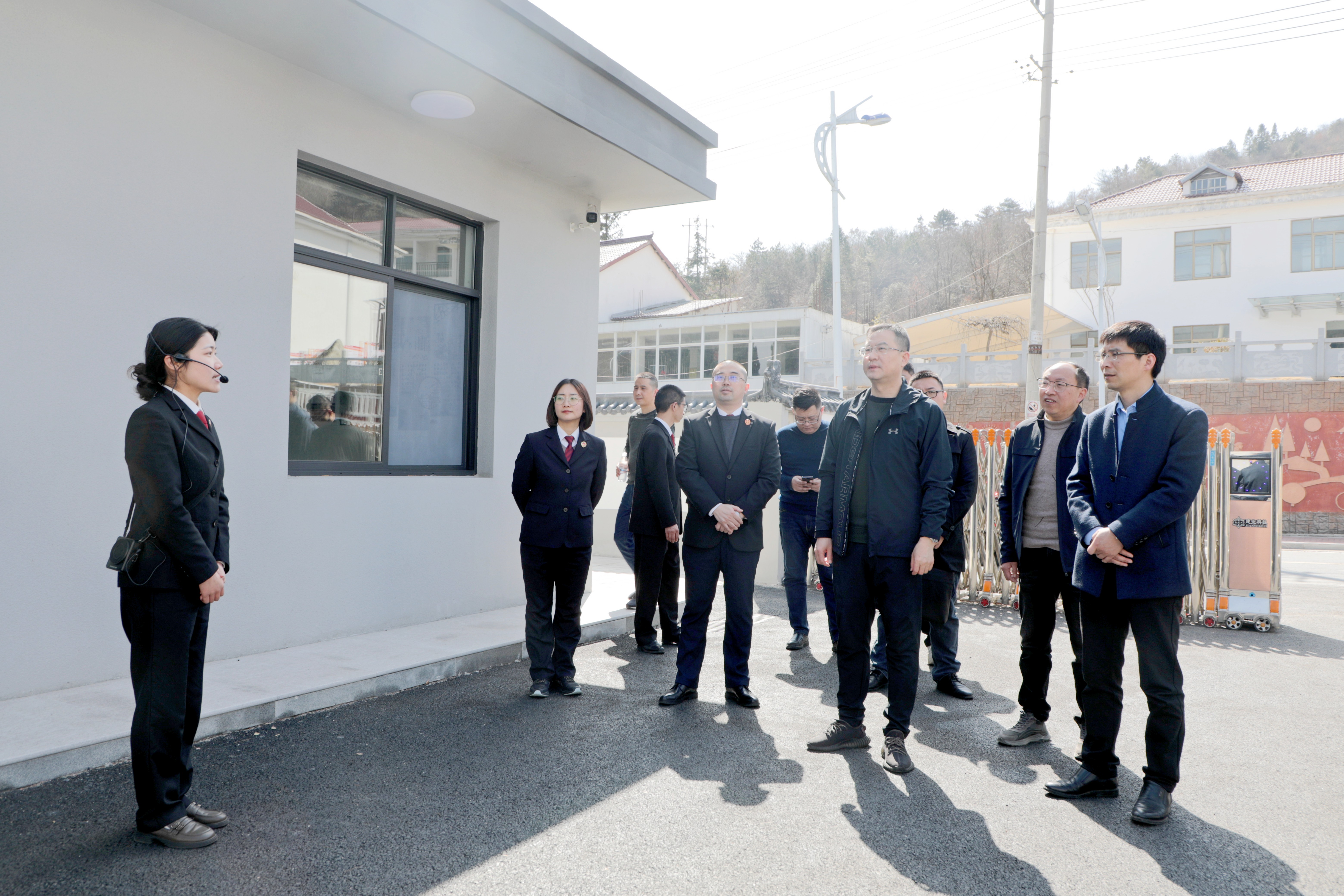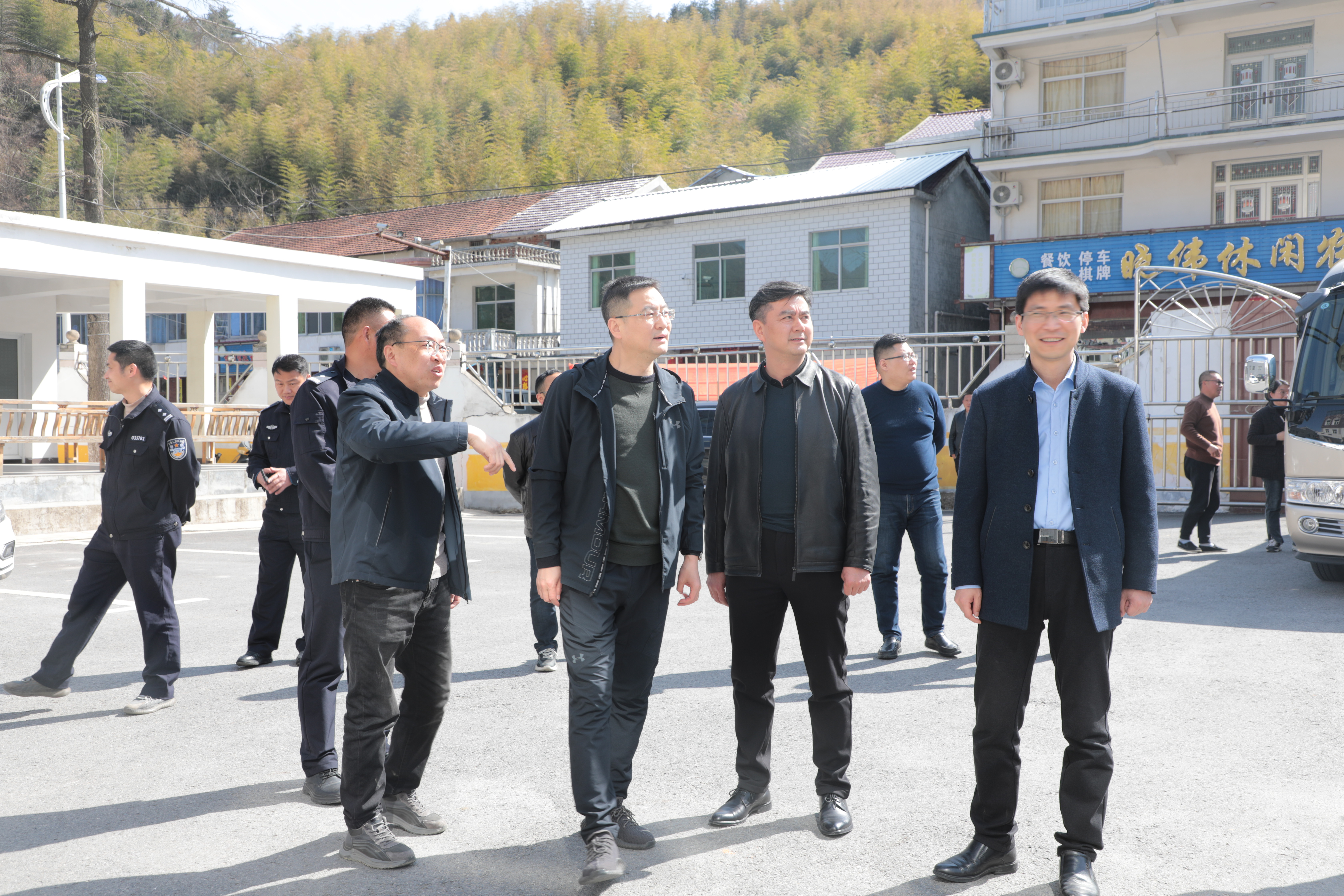 王赵春一行先来到主簿镇大歇村,详细了解大歇村和美乡村建设工作相关工作,实地调研502爱国主义国防教育基地、安徽省乡村干部实训基地等产业发展项目情况。随后,王赵春来到了石关乡、温泉镇,调研乡镇法庭、乡镇派出所及乡镇综合行政执法等工作。在石关乡马畈村,王赵春还详细了解了该村级综治中心规范化建设工作,并给出指导性建议。