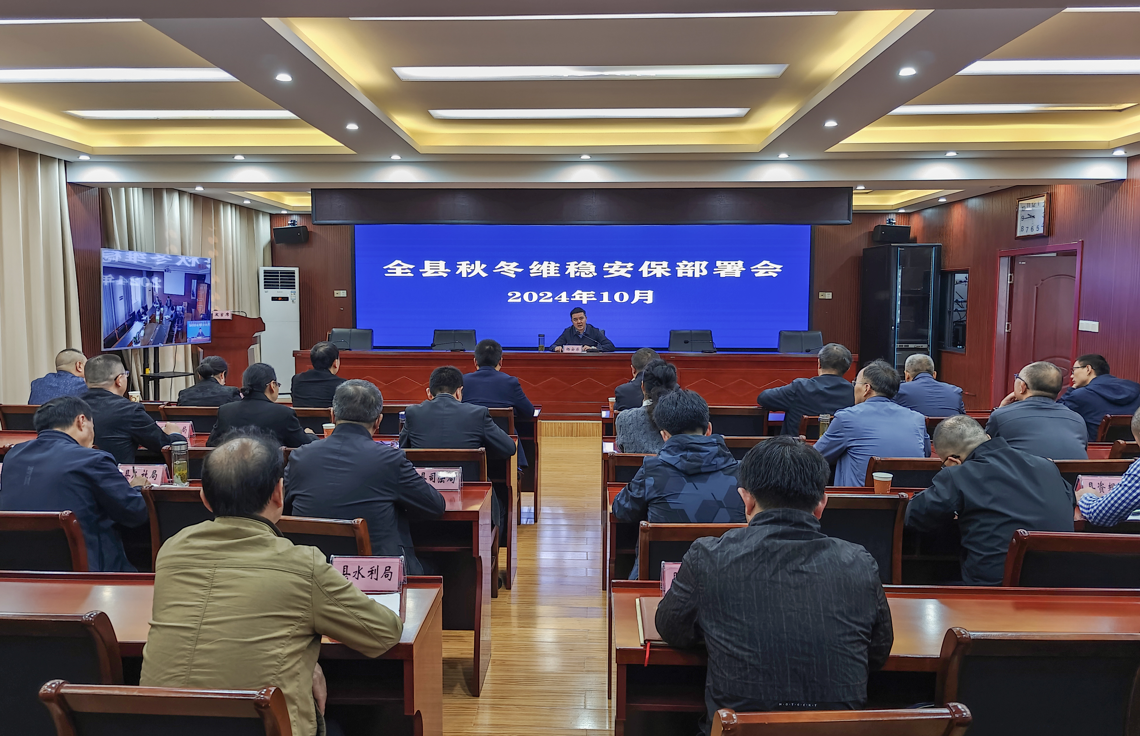 10月15日上午,岳西县秋冬季维稳安保部署会召开。县政府副县长、公安局党委书记、局长杨安乐主持,县直相关单位,各乡镇主要负责同志、分管负责同志、政法委员,人民法庭庭长、派出所所长、司法所所长参加会议。